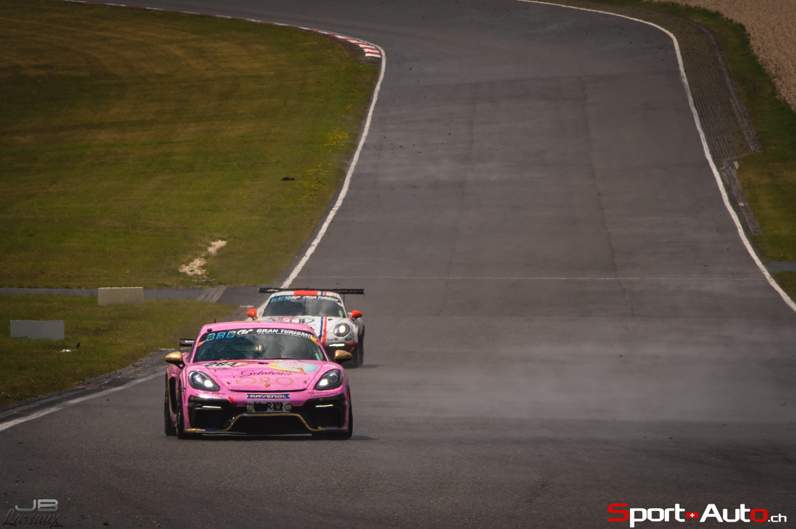 Devant, la lutte ne faiblissait pas pour autant puisque Dries Vanthoor (Audi n°15) et Fabian Schiller (Mercedes n°3) nous offrait une belle lutte. Jusqu’à l’arrivé de la pluie. Et, cette évolution de la météo, qui correspondait également à des fenêtres de pit-stop pour les deux équipes, allait être décisive pour la victoire puisque le Phoenix Racing optait pour des pneus mixte là où le Mercedes AMG Team GetSpeed restait en slick.