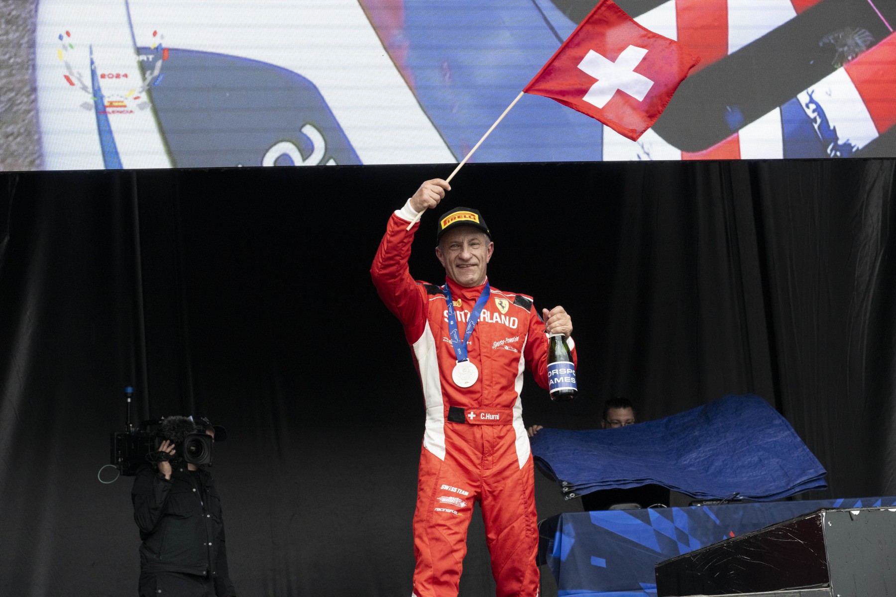 Christophe Hurni n’aurait pas pu rêver mieux. Le Neuchâtelois de 61 ans a décroché la 2ème place sur le podium de la course “Single Make GT” des FIA Motorsport Games à Valence, synonyme de médaille d’argent pour lui et son équipe représentant la Suisse dans cette compétition internationale.