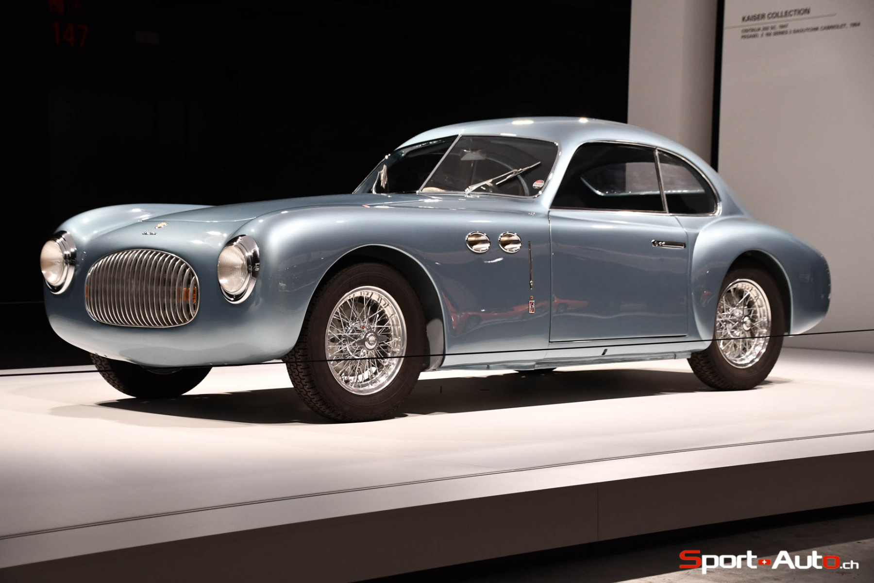 Fritz Kaiser a exposé à Grand Basel les voitures suivantes: Cisitalia 202 (1947), Lamborghini Miura (1968), Fiat 8V (1953), Fiat 500 Ghia Jolly (1959), BMW 507 (1959), Porsche 550 Spyder (1956), deux bus VW T1 des années 1960 et la sculpture-squelette qui a permis au maître-carrossier italien Dino Cognolato de restaurer l’Alfa Romeo 6C 2500 Competizione (1948) de la Kaiser Collection.