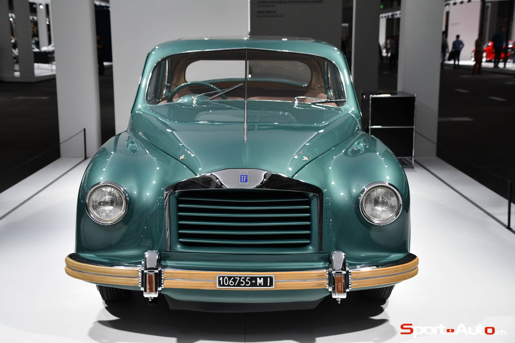 Cette voiture, qui ne dépassa pas le stade d’une maquette à l’échelle 1:10 à l’époque, a été dévoilée en première mondiale à Bâle, à l’échelle 1:1. Cela devant une photo du gratte-ciel Pirelli construit par Giò Ponti à Milan. Ce très intéressant prototype avait une dizaine d’années d’avance. Il anticipait en effet les premières berlines à hayon telles que l’Autobianchi Primula et la Renault 16, respectivement apparues en 1964 et en 1965.