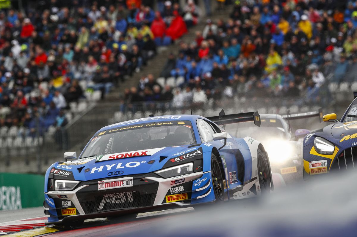 Samedi, la météo était incertaine sur le Red Bull Ring puisque si la majorité des concurrents s’élançaient en pneus pluies, la piste séchait et cette évolution allait jouer un grand rôle dans le classement final. Ainsi, si Laurin Heinrich s’élançait de la pole position et prenait le meilleur départ, Kelvin Van der Linde est parvenu à gagner plusieurs positions en début de course pour occuper le deuxième rang derrière la Porsche du Team 75 Motorsport. Et, le pilote Audi effectuait une manœuvre audacieuse en étant l’un des premiers pilotes à rentrer aux stands parmi les leaders, ce qui allait s’avérer payant.