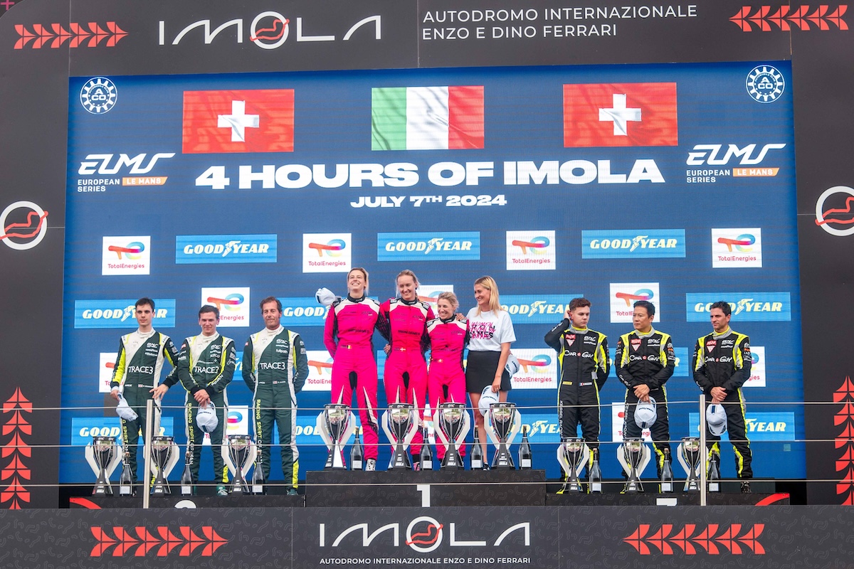 Dans la catégorie LM GT3, malgré une dernière neutralisation en fin de course, Michelle Gatting parvenait à conserver la tête de la catégorie malgré la pression de l’Aston-Martin du Racing Spirit of Leman n°59 et la Ferrari n°57 du Kessel Racing et la Danoise parvenait à conserver une seconde d’avance sur ses deux adversaires malgré des pneus usés et Rahel Frey, Sarah Bovy et Michelle Gatting remportaient la victoire à Imola.