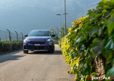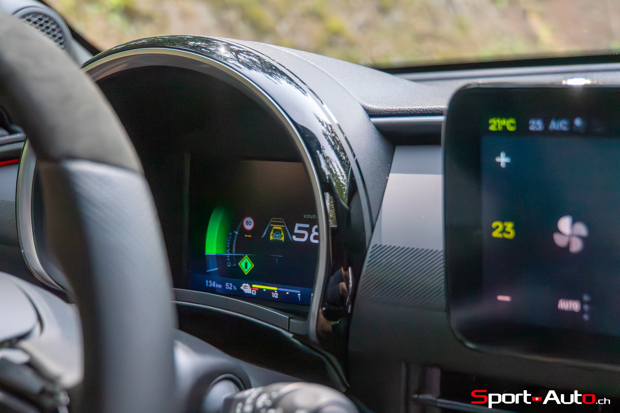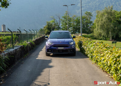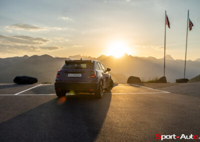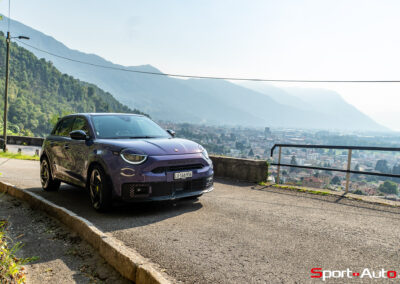 Bien qu’étant dépourvue de palettes au volant pour régler la force régénérative du moteur électrique, l’Abarth 600e adopte une gestion des décélérations homogène pour la majorité des situations. Pour les descentes raides, le mode B (one pedal) est disponible. La voiture intègre une batterie de 54 kWh : voyons maintenant ce que cela implique concrètement au niveau de l’autonomie dans un trajet indicatif en aller-retour de Sierre (Valais) à Lugano (Tessin).