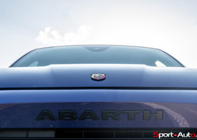 Globalement, les finitions de l’intérieur montrent du chaud et du froid. D’un côté, on retrouve des parties en alcantara au toucher qualitatif dignes du segment premium, et d’un autre beaucoup de plastiques durs sont présents un peu partout dans l’habitacle, notamment dans les contreportes et sur le haut du tableau de bord. Les occupants seront cependant récompensés par des sièges bien finis, dont les surpiqures intérieures reprennent des formes de scorpions. Lors de notre galop d’essai à Lignières, leur relative dureté nous avait surpris. Cependant, dans cet essai au long terme, cet aspect s’est finalement avéré peu dérangeant. On y est bien assis et bien maintenus. Trois adultes peuvent loger à l’arrière sans avoir de genoux coincés. Cela est à relever, sachant quAbarth n’était jusqu’ici pas renommée pour produire des voitures aux places arrière spacieuses, au contraire.