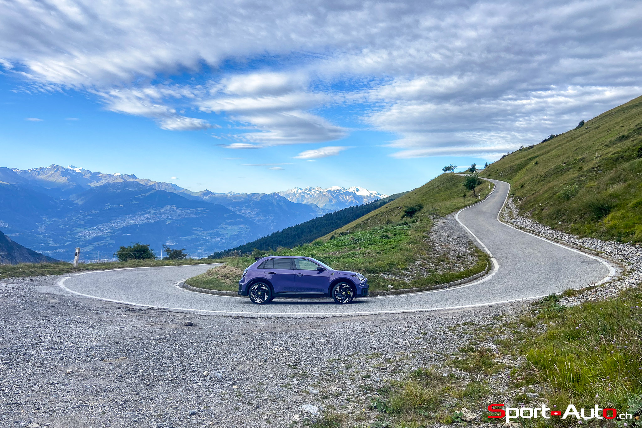 Après de nouvelles recharges jusqu’à 100%, la première partie du retour par le même itinéraire a cependant été plus énergivore : au moment de rejoindre à nouveau le col du Nufenen, il ne me restait plus que 41% d’autonomie. Cela est notamment dû à la consommation plus grande en climatisation, les 35 degrés du climat tessinois se faisant sentir. Au total, ce trajet aller-retour de 433 kilomètres, sans passagers, s’est soldé avec une consommation moyenne de 19.2 kWh/100 km. La voiture peut être rechargée via des bornes rapides de 100 kW de 20 à 80% en 35 minutes. Durant cette attente, vous pourrez vous distraire avec des jeux de société présents dans le système multimédia.