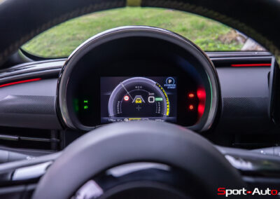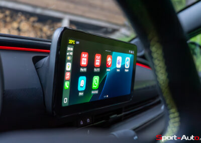 Le système multimédia de l’écran horizontal de 7 pouces est cependant moins facile à appréhender. Certaines fonctions sont cachées dans des sous-menus qui nécessitent des swipes et clics pour y accéder au doigt. L’Abarth 600e offre de série l’intégration Apple Car Play (ou Android Auto) et la navigation. Cette dernière est toutefois légèrement lente dans ses réactions, et manque un peu de proactivité en ce qui concerne la recherche de bornes de recharges sur son itinéraire.