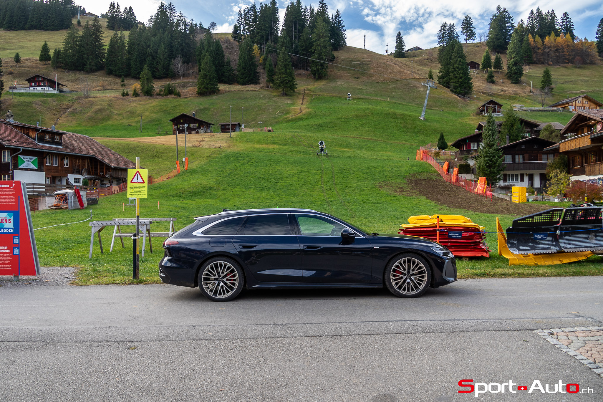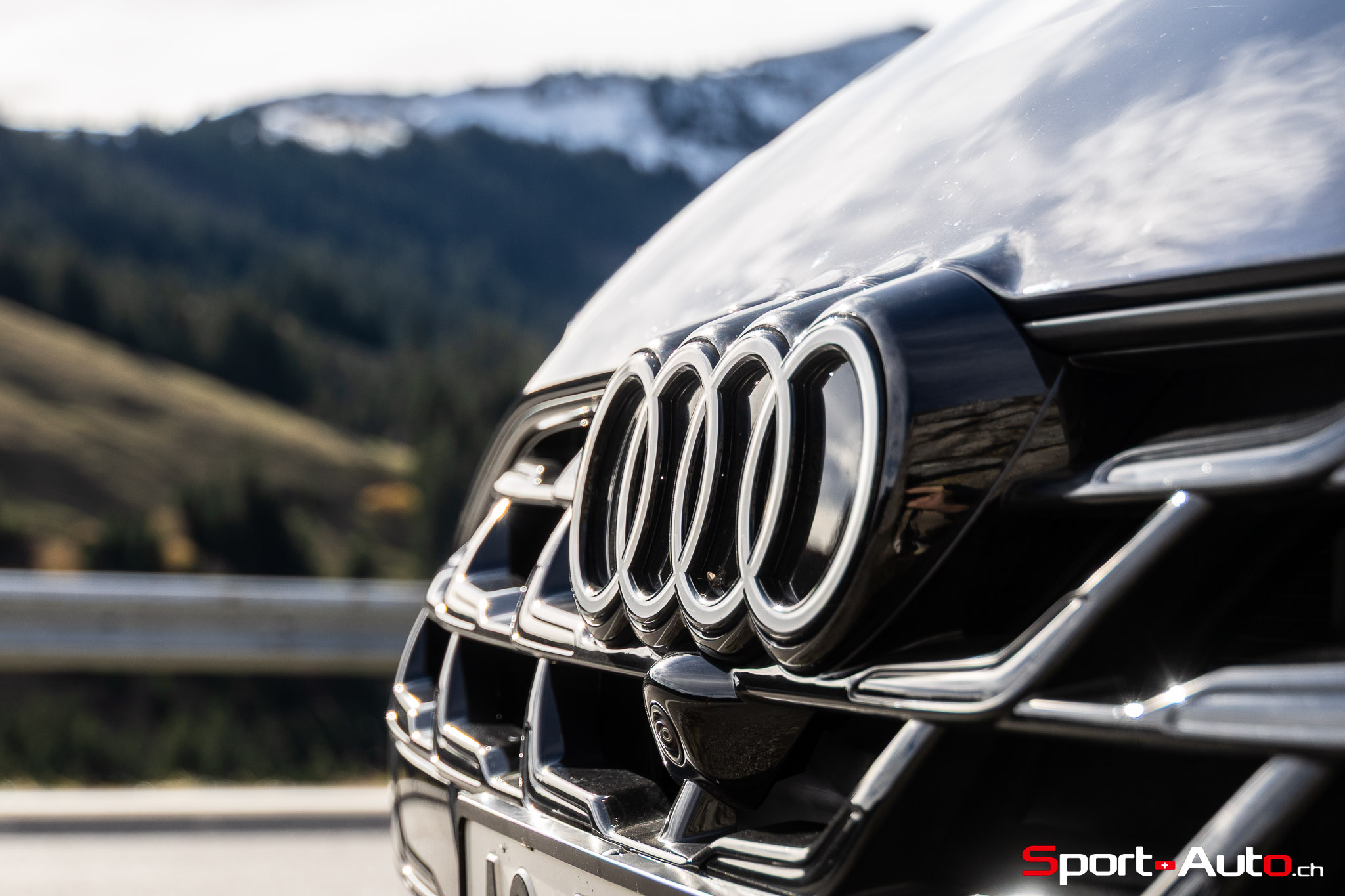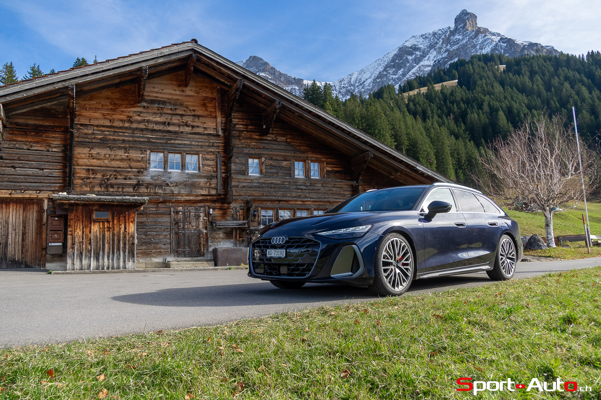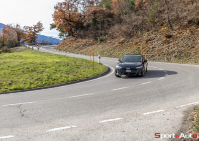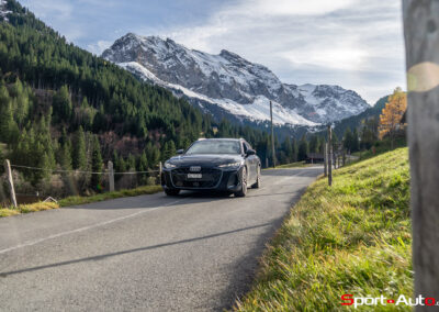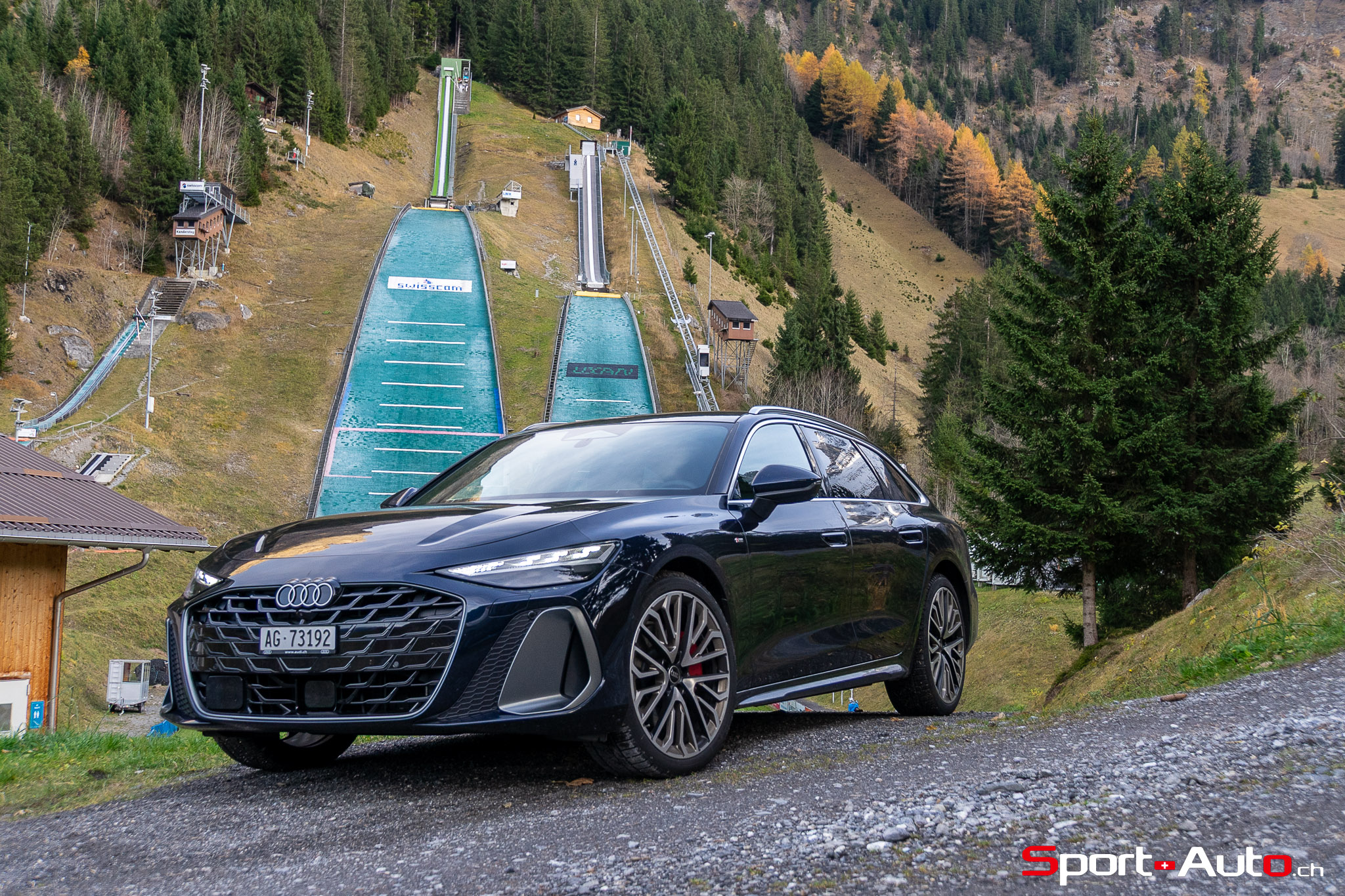 Grâce aux efforts des ingénieurs Audi sur l’hybridation légère et l’aérodynamisme, la nouvelle A6 sait se montrer sobre : nous avons mesuré une consommation moyenne de 7.9l/100km sur autoroute, et 8.3l/100km sur routes secondaires. Celles-ci nous mènent à présent au « Chuenisbärgli » près d’Adelboden, un endroit mythique du ski alpin suisse. C’est sur ce flanc de montagne que se situe l’une des pistes de slalom les plus difficiles du championnat du monde. Lorsque la neige ne le recouvre pas, on y retrouve des petites routes étroites sinueuses. Voyons à présent comment l’A6 Avant s‘y comporte !
