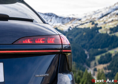 On dispose également ici du pack « éclairage ambiance pro » (CHF 390.-) qui, étonnamment, propose des achats intégrés additionnels s’inspirant par exemple des couleurs des anciennes Audi Quattro A2 gr.B. Le toit panoramique opaque (CHF 3070.– ), est quasi identique que celui de notre essai de la nouvelle Renault Espace. Contrairement à cette dernière, l’Audi A6 n’offre pas le volume de coffre le plus grand dans son segment (466 litres, sièges non rabattus).