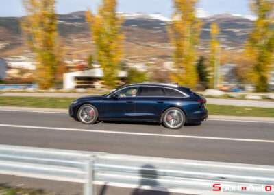 Le moteur est aidé par un une micro hybridation de type MHEV Plus 48V. Telle une main géante entraînant vers l’avant le véhicule, la combinaison de cette assistance électrique avec le V6 offre une poussée forte et constante. Le 0-100 km/h est abattu en 4.7 secondes. Pas mal, sachant que c’est un break d’entrée de gamme dans blason « S » ou « RS ». Le système ACC (alternateur de chaîne cinématique) permet de manœuvrer de manière entièrement électrique, sans réveiller le V6. De plus, la voiture est équipée d’une suspension pneumatique adaptative qui peut élever la voiture pour gravir des éventuels chemins rocailleux.