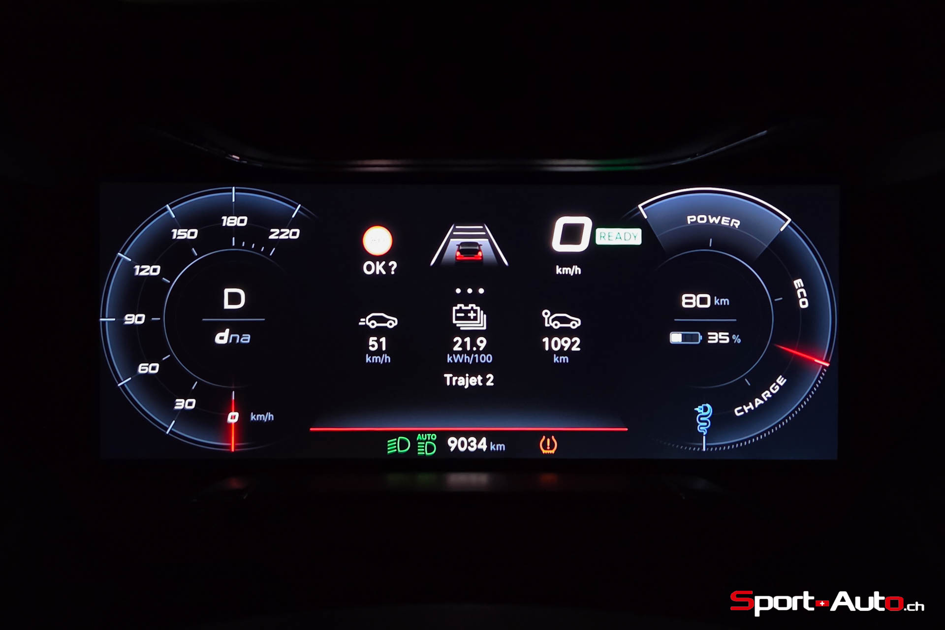 – Bien que le mode de conduite Advanced Efficiency – le plus économique – ait été privilégié, le mode Dynamic a aussi été utilisé afin de tester les performances du véhicule (dans ce mode, aucune énergie n’est récupérée au freinage, ce qui augmente la consommation).