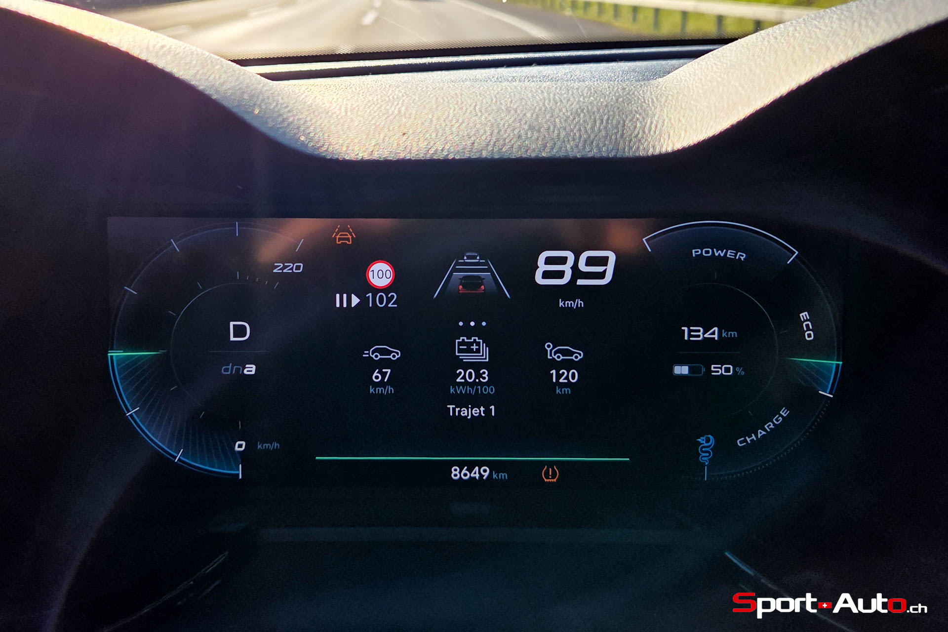 – Bien que le mode de conduite Advanced Efficiency – le plus économique – ait été privilégié, le mode Dynamic a aussi été utilisé afin de tester les performances du véhicule (dans ce mode, aucune énergie n’est récupérée au freinage, ce qui augmente la consommation).