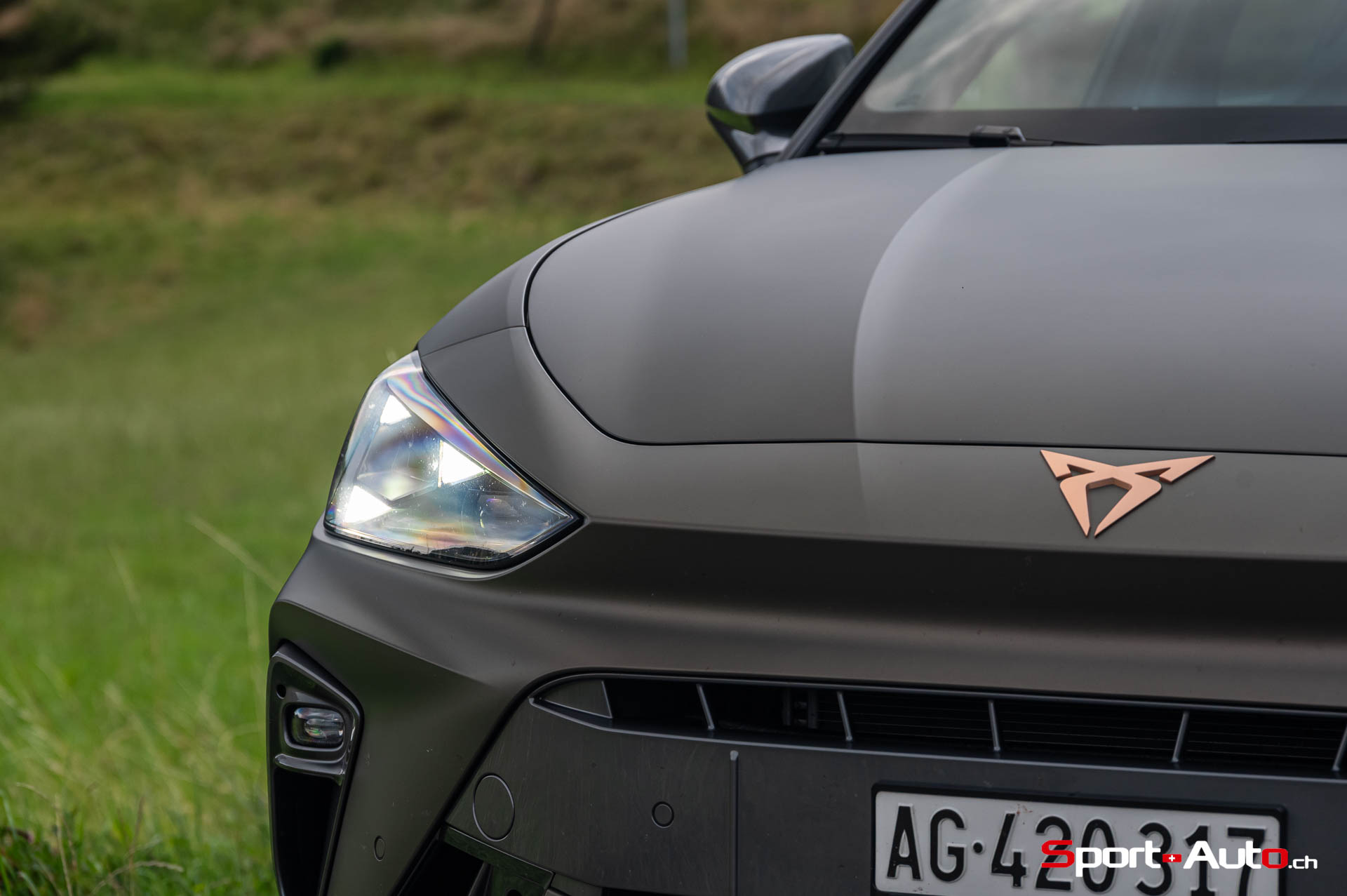 En s’approchant de notre modèle d’essai, on apprécie d’abord (ou pas) l’originale peinture Century Bronze Mat (CHF 2’550.-, à noter que d’autres peintures mates exclusives sont disponibles). La hauteur de caisse abaissée, les jantes en aluminium forgé de 19 pouces Hailstorm (CHF 1’800.-) en finition noir/cuivre ainsi que les bas de caisse Cupra (CHF 450.-) confèrent à l’auto une apparence sportive.