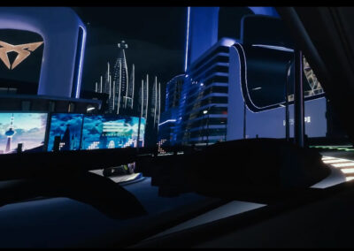 Voici devant nous le premier concept car de conduite électrique “phygitale“. Le principe de “l’Exponential Experience” ? Fusionner le monde physique et virtuel, pour proposer une expérience de conduite qui permet de piloter une vraie voiture mais dans un univers de jeu vidéo, grâce à des lunettes de réalité virtuelle. Comme un simulateur de conduite, sauf que votre manette est… une voiture, dans laquelle vous vous installez. Celle-ci réagit en temps réel à vos mouvements de volant et de pédales, se déplaçant à la vitesse réelle dans l’environnement virtuel que vous percevez via les lunettes VR. Ce projet de “gamification” ultra poussée a été lancé par Cupra avec l’ambition de continuer à engager la Génération Z, une de leurs clientèle cible.