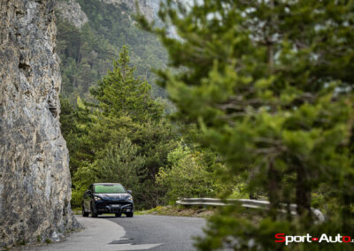 L’autonomie annoncée de 512 km (WLTP) paraît difficilement atteignable dans la réalité. La batterie dispose d’une capacité nette de 77 kWh. Notre consommation moyenne durant l’essai a dépassé les 20 kWh/100 km sur les plus de 1500 km parcourus à une allure moyenne plutôt soutenue. Le constructeur annonce pouvoir faire passer la capacité de 10% à 80% en 30 minutes sur une borne d’au moins 135 kW. Au final, ne comptez pas trop dépasser les 400 km d’autonomie avec une charge complète pour une conduite dynamique sur routes variées.