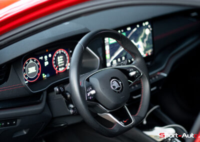 C’est précisément pour cette raison que j’aborde cet essai avec un certain pincement au cœur : l’Octavia RS n’est aujourd’hui plus proposée avec une traction intégrale, alors même que celle-ci s’impose comme une évidence pour de nombreux automobilistes suisses. La question est donc légitime : peut-elle encore prétendre à son statut sans ses quatre roues motrices ?