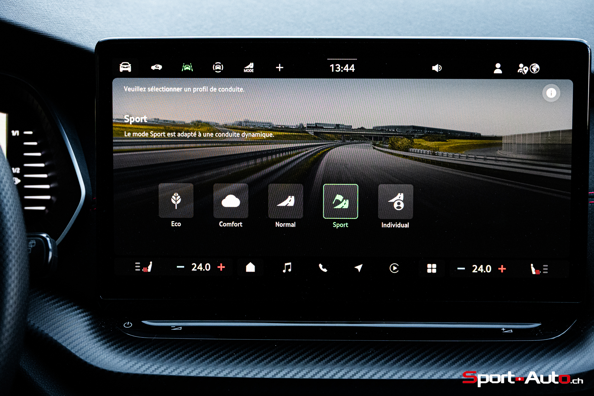 Notre Octavia RS est équipée des suspensions pilotées DCC (CHF 850.-), qui permettent d’ajuster efficacement le compromis entre confort et dynamisme. En mode Comfort, la RS absorbe très correctement les irrégularités, nous le verrons, y compris sur routes dégradées. En Sport, le maintien de caisse se raffermit sensiblement, sans jamais devenir excessivement ferme. Le train avant repose sur un différentiel ouvert assisté par un autoblocage électronique (XDS+) et non pas d’un autobloquant mécanique, comme le groupe VW a pu en proposer sur certaines tractions plus radicales.
