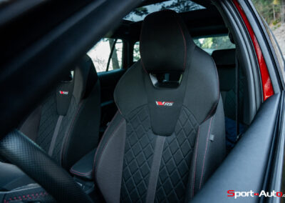 Sous le capot, le 2.0 TSI de 265 ch fait exactement ce qu’on attend de lui. Il se montre disponible dès les bas régimes, souple en conduite quotidienne et suffisamment énergique lorsque le rythme s’accélère. Les relances sont franches, la puissance toujours exploitable, et la boîte DSG accompagne bien l’ensemble, sans à-coups ni temps morts notables. Ce moteur séduit surtout par son équilibre : performant sans excès, efficace sans brutalité et globalement maîtrisé côté consommation, avec 8,3 l/100 km mesurés lors de notre essai. En revanche, les amateurs de sensations pures resteront peut-être sur leur faim, la sonorité restant volontairement discrète.