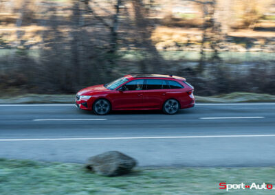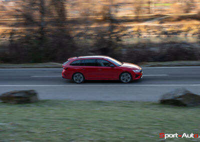 L’Octavia RS affiche un tarif de base de CHF 53’650.–. Entre l’attelage de remorque (CHF 1’070.–), le toit panoramique (CHF 1’720.–), les aides à la conduite avancées, le système audio Canton et plusieurs packs, notre modèle d’essai atteint CHF 58’720.–. A ce niveau, le rapport prix/prestation n’est plus exceptionnel. Face à elle, la Cupra Leon Sportstourer VZ, pour environ CHF 2’000.– de plus, propose 333 ch, près de deux secondes de mieux au 0–100 km/h, et surtout une traction intégrale. Même constat face à la Volkswagen Golf Variant R, plus chère, mais techniquement plus complète. Dans ce contexte, la RS ne joue plus la carte du “bon plan”, mais celle du compromis.