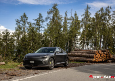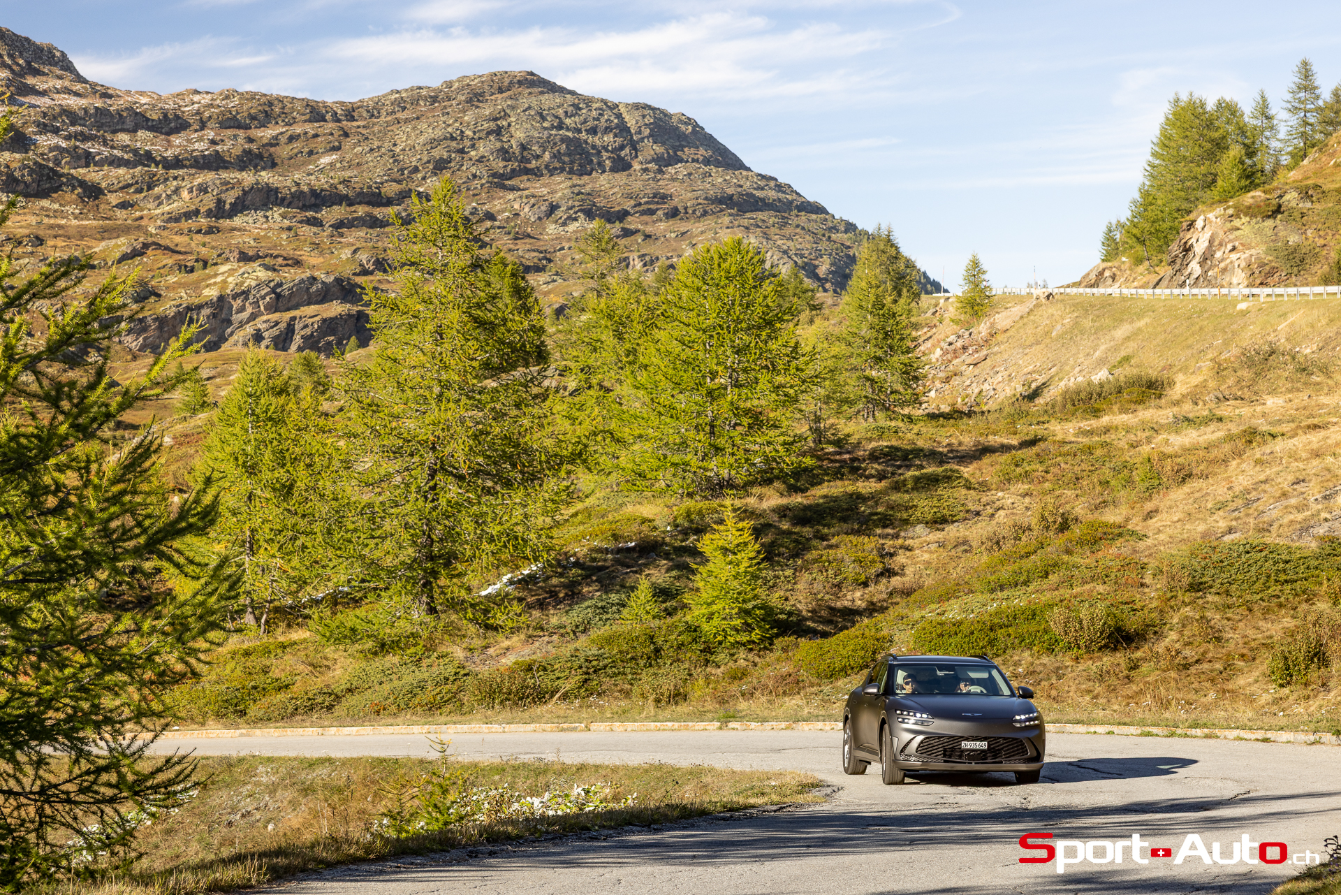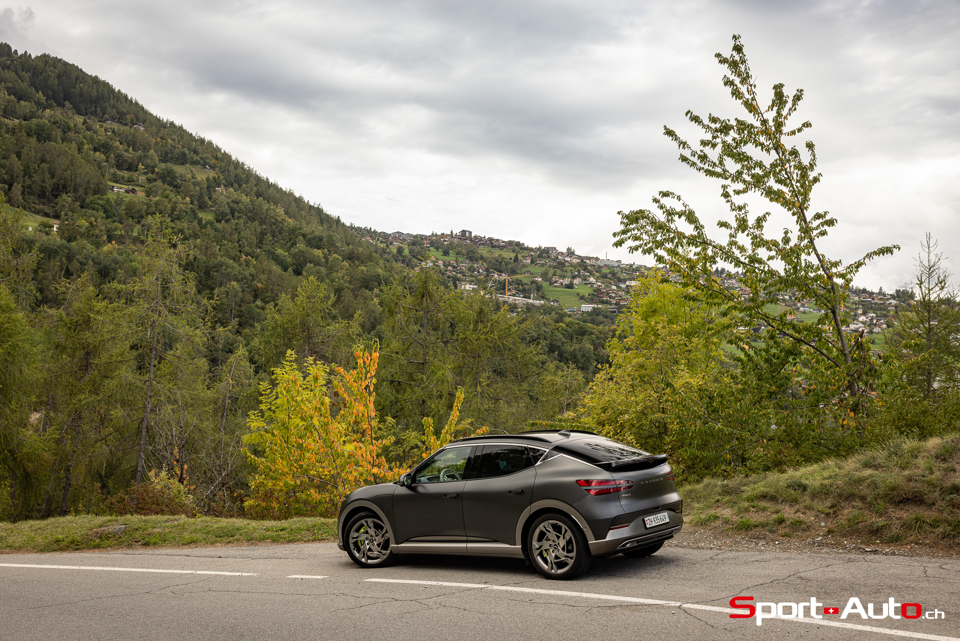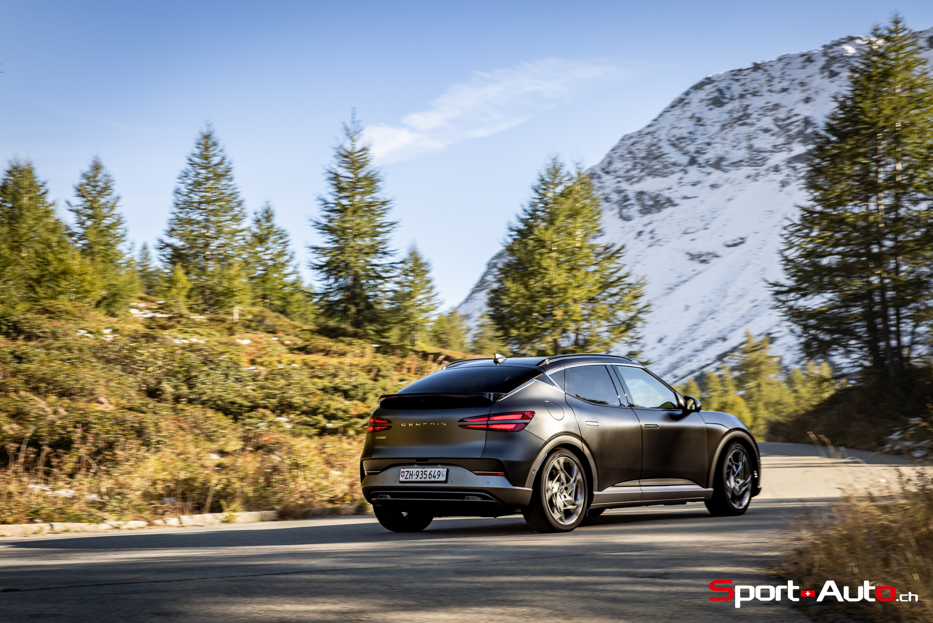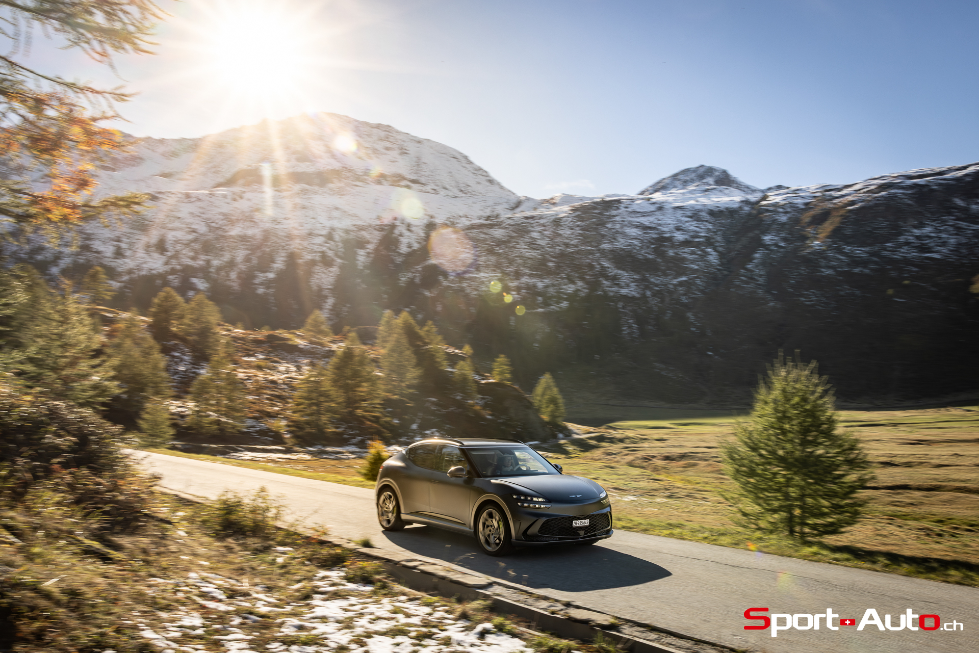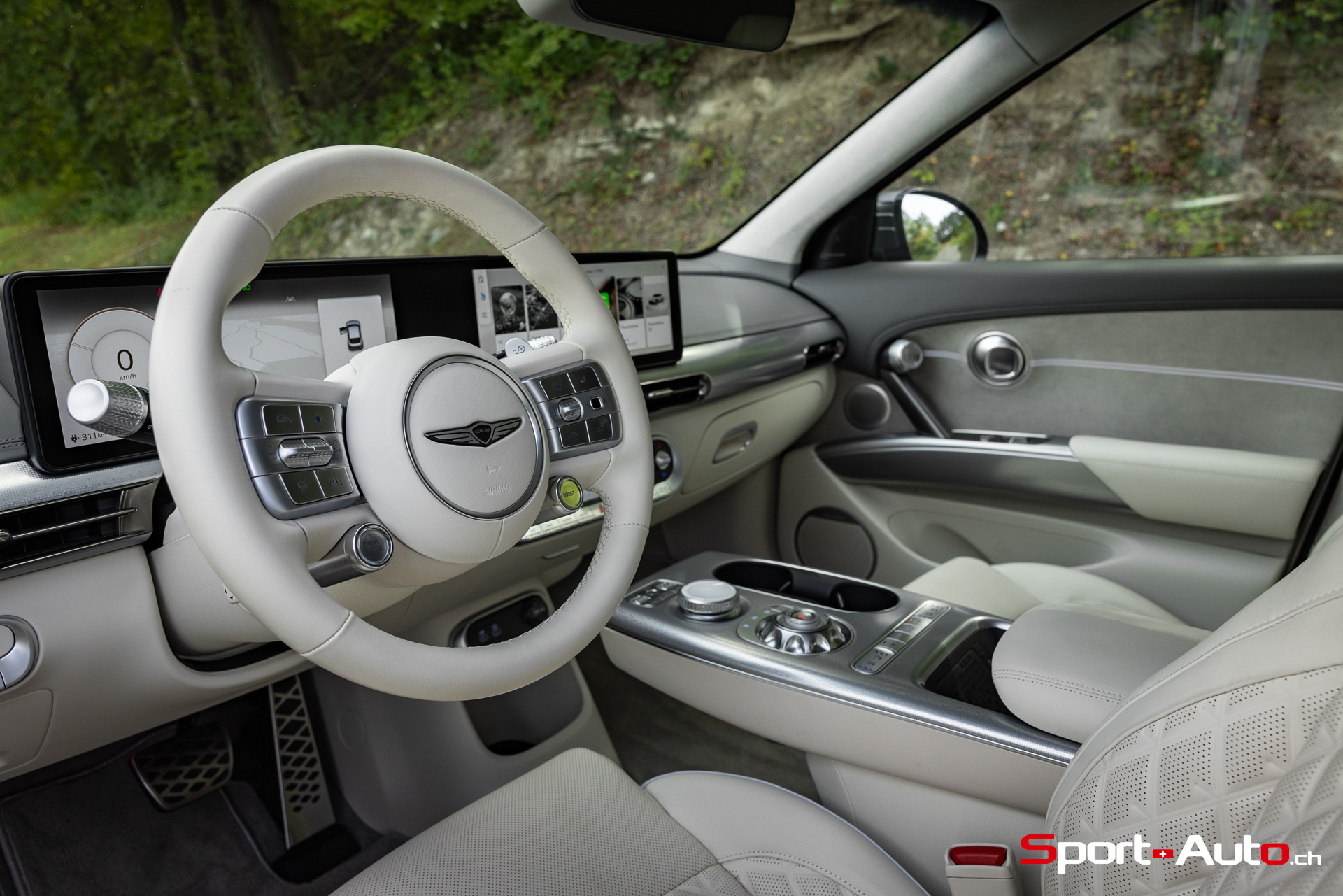 Il faut dire que la monte pneumatique hivernale qui équipe notre modèle d’essai ne favorise pas vraiment une inscription en courbe des plus précises. La direction n’est pas très incisive et la tenue de cap n’est pas très tranchante. A vive allure, on ne se sent pas vraiment en confiance et, très vite, on a tendance à lever le pied pour profiter des qualités de la voiture à un rythme moins élevé. Dommage que Genesis donne l’appellation Sport Plus à une GV60 dont la vocation n’est pas vraiment d’enchaîner les virages à vive allure. Avec ce nom expressif, on s’attend à un comportement plus dynamique mais cela n’enlève en rien les qualités du véhicule qui ont d’ailleurs été reconnues par la nomination de « Voiture suisse de l’année 2023 » par la presse spécialisée.