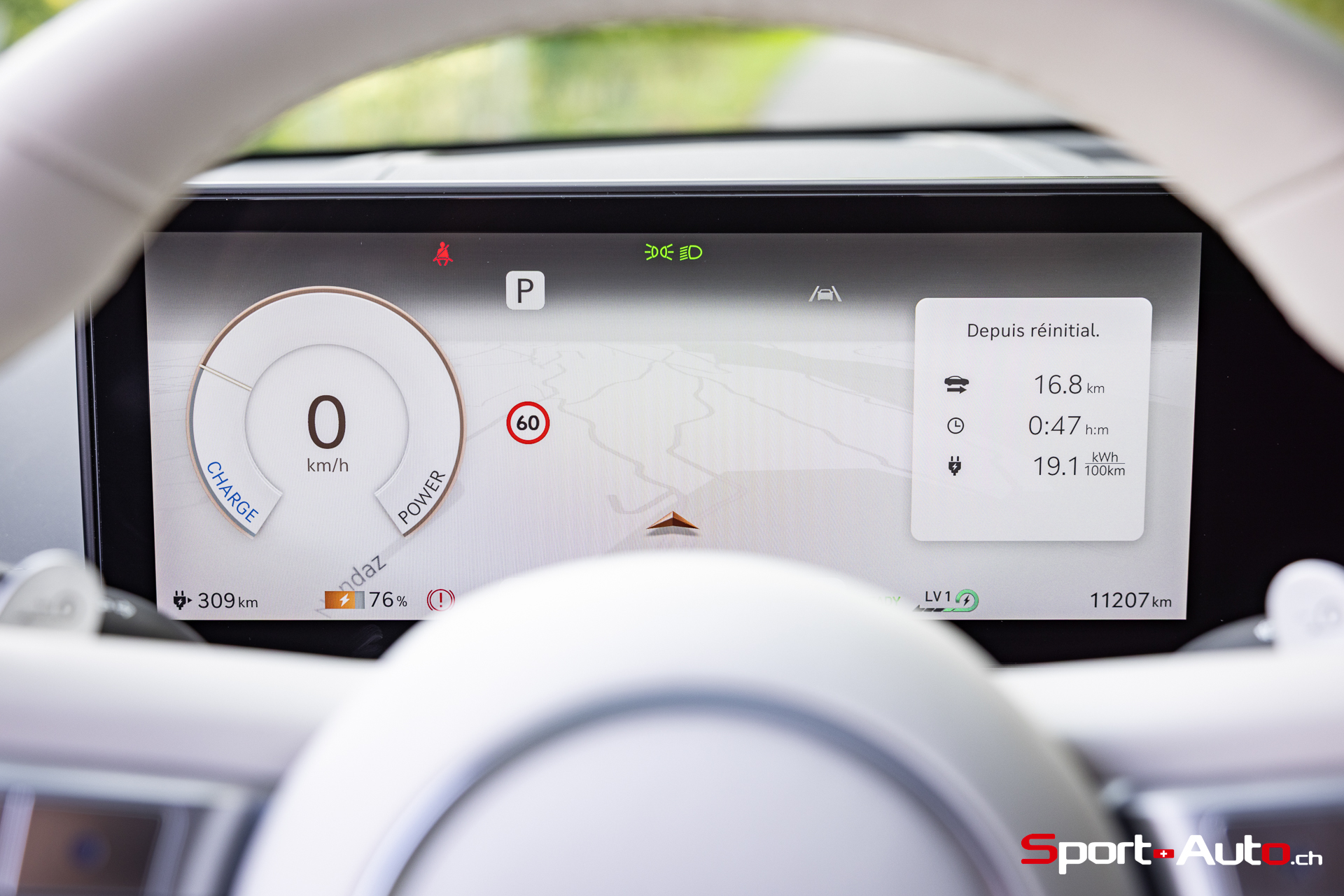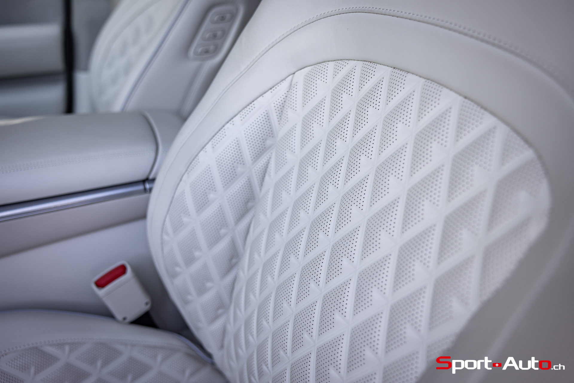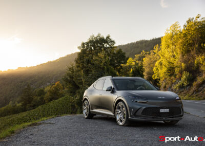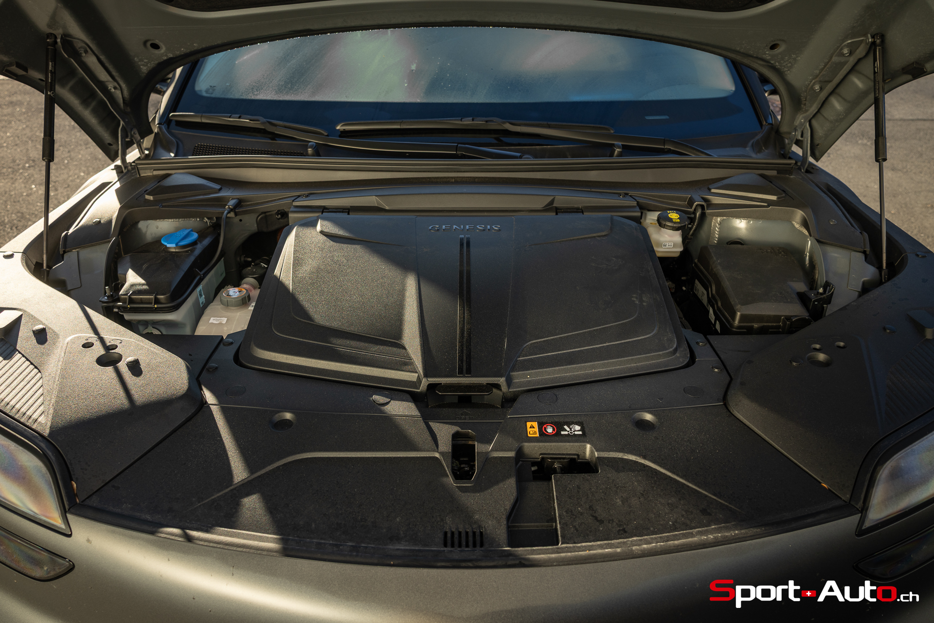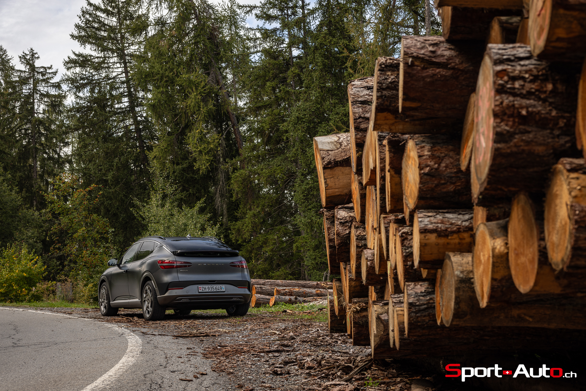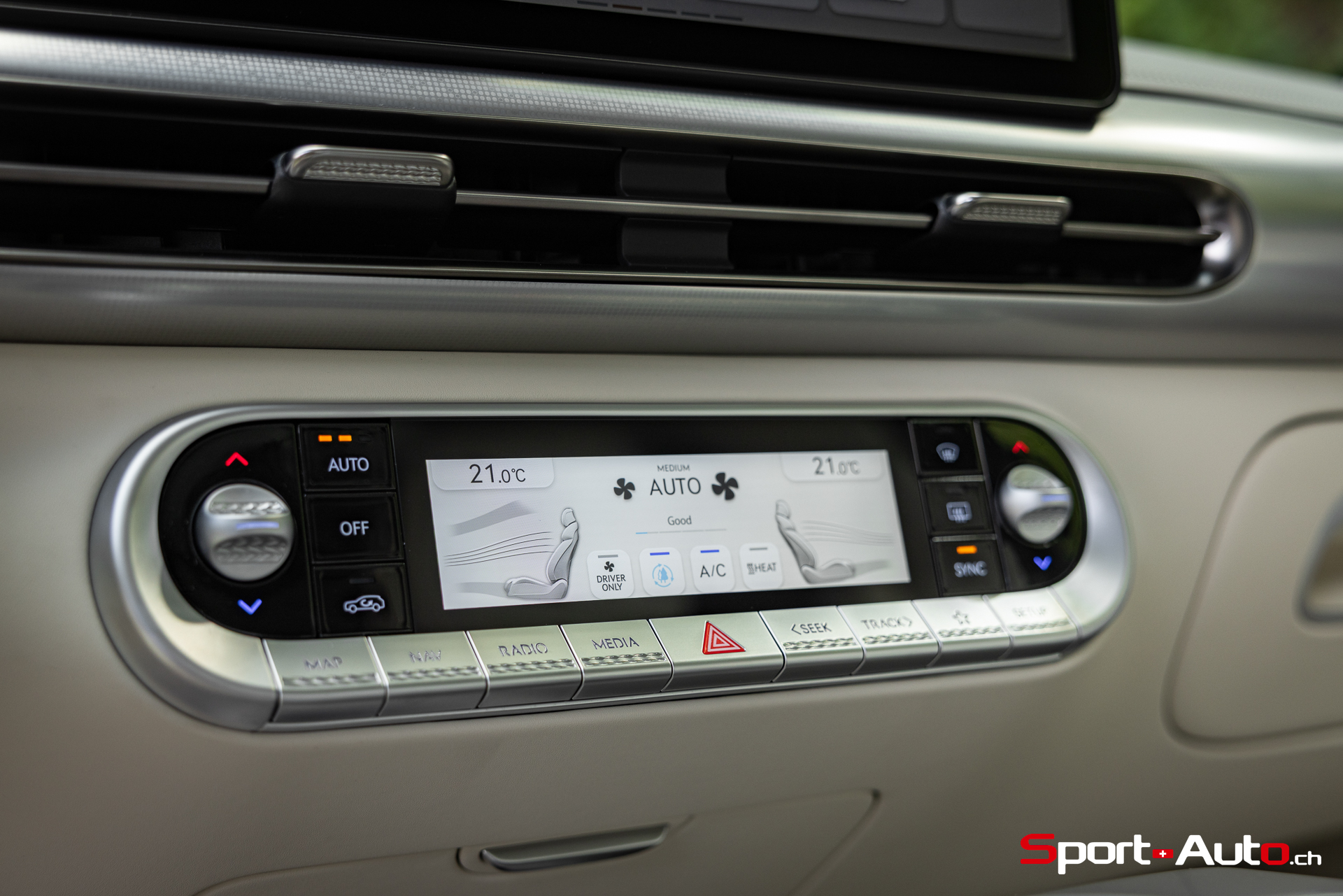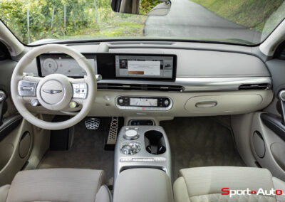 Il faut dire que la monte pneumatique hivernale qui équipe notre modèle d’essai ne favorise pas vraiment une inscription en courbe des plus précises. La direction n’est pas très incisive et la tenue de cap n’est pas très tranchante. A vive allure, on ne se sent pas vraiment en confiance et, très vite, on a tendance à lever le pied pour profiter des qualités de la voiture à un rythme moins élevé. Dommage que Genesis donne l’appellation Sport Plus à une GV60 dont la vocation n’est pas vraiment d’enchaîner les virages à vive allure. Avec ce nom expressif, on s’attend à un comportement plus dynamique mais cela n’enlève en rien les qualités du véhicule qui ont d’ailleurs été reconnues par la nomination de « Voiture suisse de l’année 2023 » par la presse spécialisée.