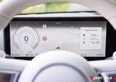 La batterie de 77.4 kWh est censée vous offrir une autonomie de l’ordre de 465 kilomètres. Comme souvent, la réalité est un peu différente mais il ne semble pas impossible d’atteindre les 400 kilomètres d’autonomie. La consommation moyenne annoncée de 16-17 kWh/100 km est peu réaliste pour une utilisation normale/mixte. Comptez plutôt 20-22 kWh/100 km sur des trajets du quotidien. Cela dit, selon notre expérience, la recharge sur une borne rapide vous permet de passer de 10 à 78% en exactement 30 minutes.