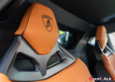 Mais la grande nouveauté conceptuelle de l’intérieur de cette Temerario, c’est l’habitabilité. Pour donner suite à différents feedbacks de sa clientèle, Lamborghini a décidé de concevoir un habitacle plus grand et plus confortable que celui de la Huracan. L’objectif ? Lui permettre d’être conduite par tous, y-compris de grandes personnes dont la taille avoisine les 2 mètres, et longtemps. Les seuils de portes sont donc optimisés pour un accès à bord facilité, et on retrouve désormais derrière les sièges un espace de chargement pouvant loger deux grands bagages. À cela s’ajoute un coffre à l’avant plus grand, capable lui aussi de transporter deux valises. Sur une voiture de ce segment, cela ne va pas de soi, sachant que les batteries et la transmission intégrale prennent une place non négligeable à l’avant du véhicule.