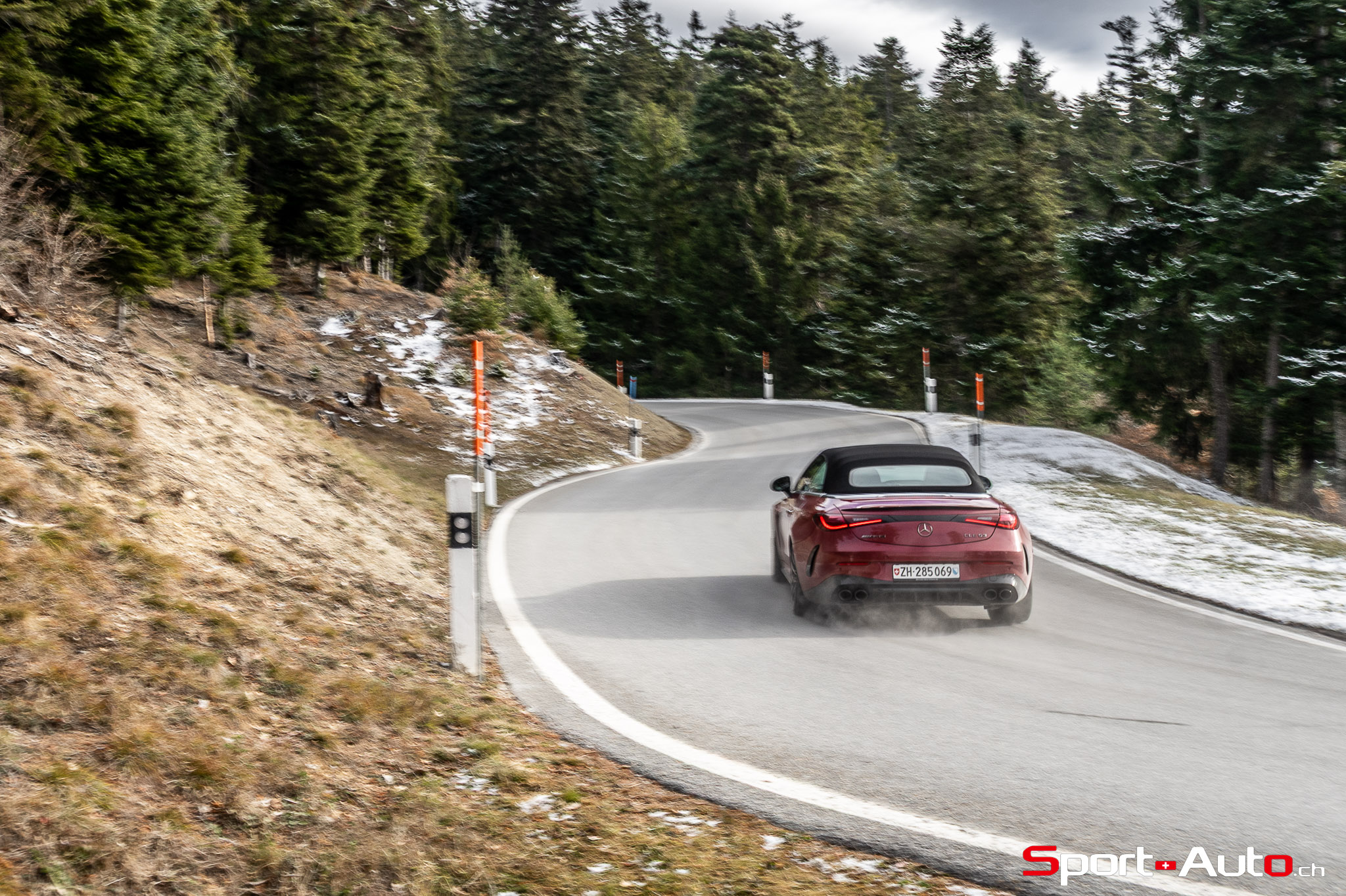 Le prix de départ de la CLE 53 4Matic+ est fixé à CHF 110’700.- et notre exemplaire optionné atteint CHF 132’142.-. Mercedes place ce modèle dans un marché où ses concurrentes directes coûtent majoritairement plus cher à l’achat. On pense notamment à la BMW M4 Competition XDrive Cabriolet (530 ch, à partir de CHF 141’000.-), ou encore la Maserati Grancabrio (à partir de 490ch, CHF 201’500.-). Et comment la CLE 53 se situe par rapport à une Porsche 911 Carrera Cabriolet ? Avec leur architecture différente, elles évoluent dans une catégorie à part. Encore une fois, les prix sont bien plus élevés : la Porsche 992.2 Carrera 4S Cabriolet demande CHF 204’400.- comme tarif de base et une Targa 4S CHF 206’400.-.