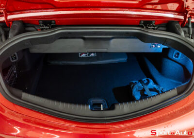 Notre exemplaire en Rouge Patagonie MANUFAKTUR (CHF 2400.-) est équipé de roues d’hiver (285/40 R17). Quant à la capote, elle peut être ouverte en 20 secondes et jusqu’à 60 km/h. La silhouette latérale de la CLE 53 donne presque un faux air de yacht sur roues, grâce à la partie plane au-dessus de son essieu arrière. Sous cette longue poupe, le coffre dispose d’une capacité de 385 litres en capote fermée et de 285 litres une fois celle-ci ouverte. Ce volume peut être agrandi en rabattant les sièges. Ceux-ci sont suffisamment grands pour accueillir des adultes à l’arrière, comme dans une Maserati Granturismo par exemple.