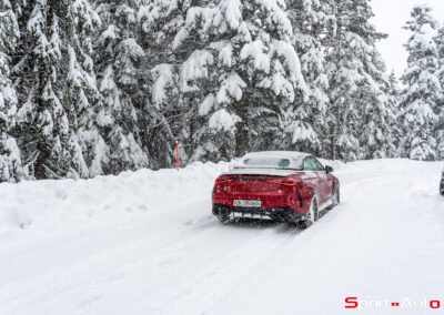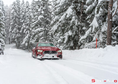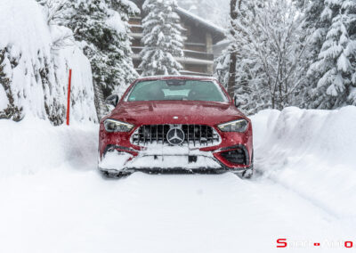Une tempête de neige en vue ? Pas de soucis, la CLE 53 motrice bien et vous conduit chaque fois à bon port. Equipée de sa transmission intégrale, elle n’est pas piégeuse. Son comportement en montée sur la neige est sain et non moins divertissant. Les mises en dérive sont même faciles à enclencher… mais pas à entretenir. Le mode ESC Off semble encore soumis aux garde-fous électroniques. Ce n’est cependant pas trop frustrant, les sourires sont là !
