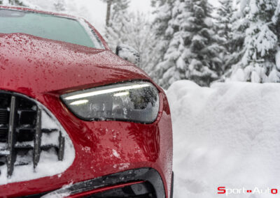 Malgré sa longueur assez conséquente (4.85m), la CLE 53 se montre agile grâce aux roues arrières directrices qui tournent à un maximum de 2.5 degrés. Telle une main qui vous aide à pivoter, c’est une aide très agréable dans les virages. Au fil des courbes, on est surpris par sa grande efficacité, malgré les températures négatives rencontrées durant notre essai. Malgré son poids de 2110 kg, elle donne confiance à son conducteur. Le travail au niveau suspensions adaptatives AMG RIDE CONTROL est également remarquable. Leurs réglages de dureté au fil des modes de conduite est idéal pour cette voiture Grand Tourisme.