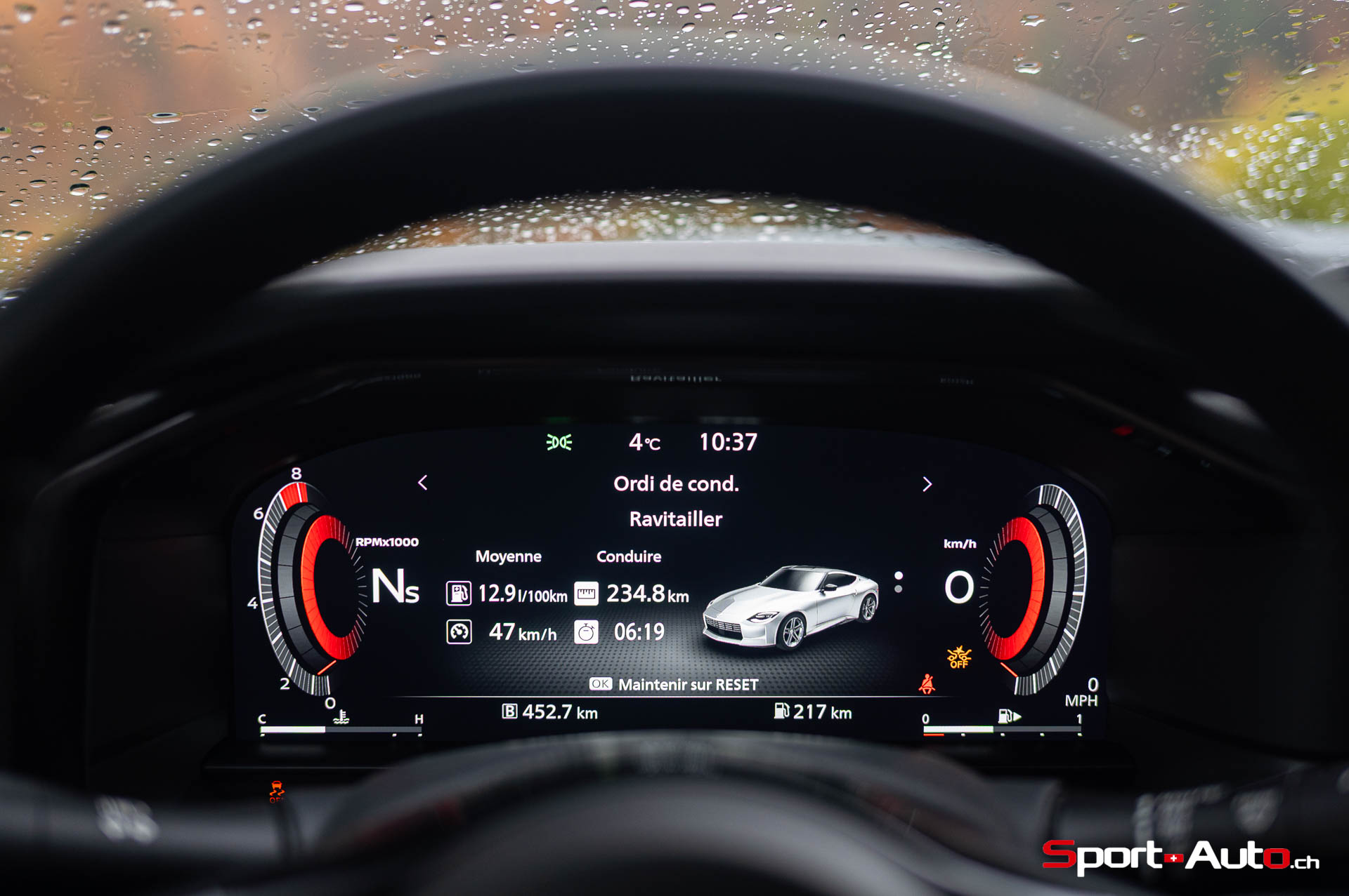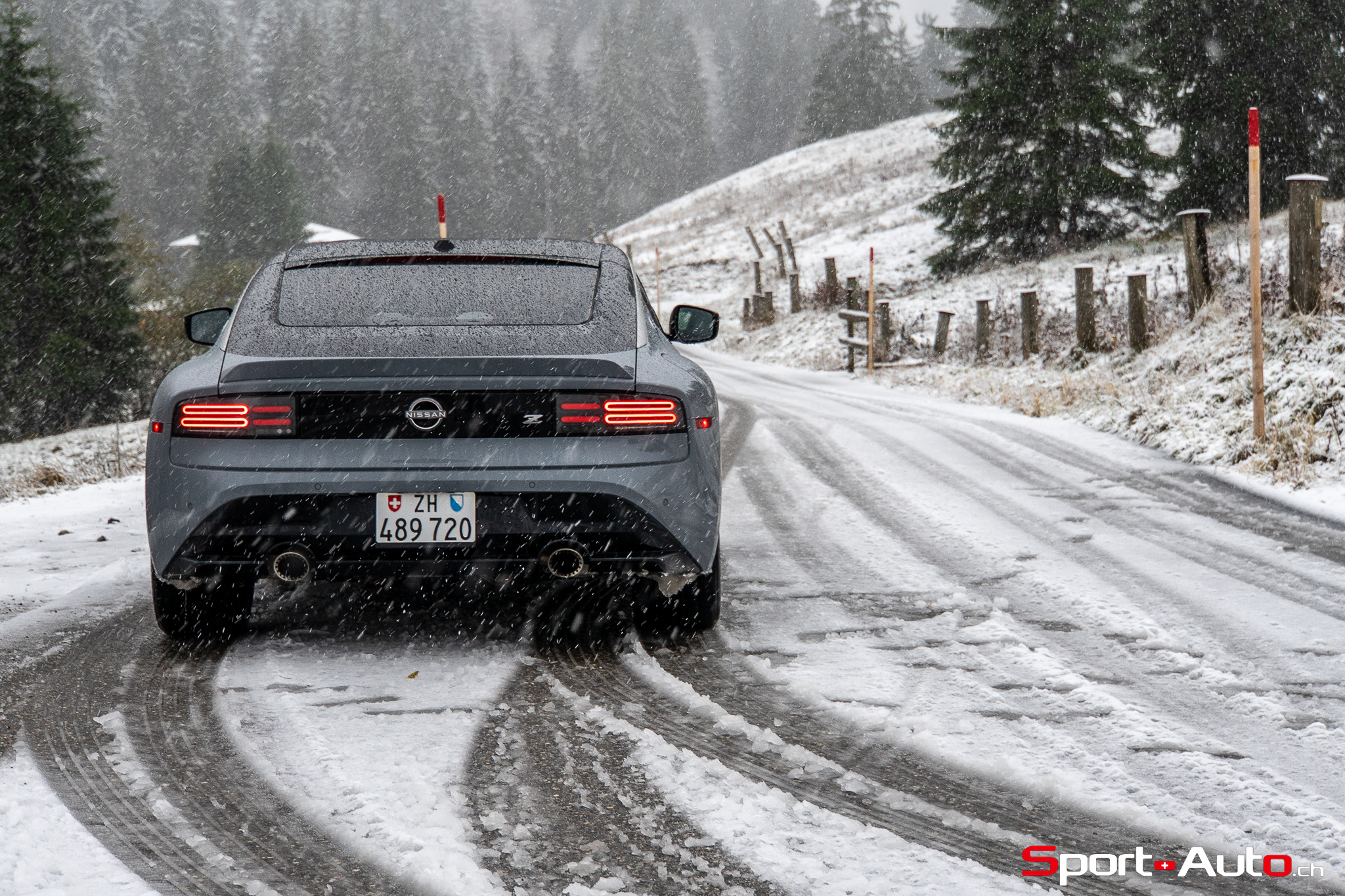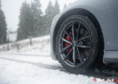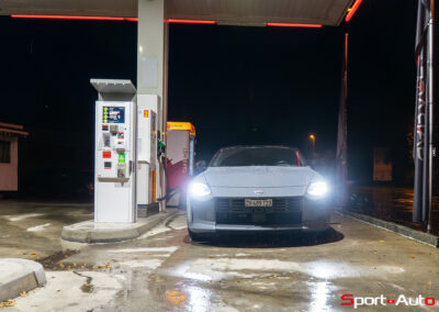 Malgré les conditions automnales de notre essai mélangeant givre, pluie et même neige, la Nissan Z a montré une polyvalence acceptable, digne d’une voiture de production actuelle. Certes, il faut particulièrement doser son pied droit, car le patinage n’est jamais bien loin, même sans appuyer sur le bouton ESC off. Nous l’avions constaté lors de notre article sur l’initiation au drift sur circuit, la lignée des Nissan Z a toujours été une excellente base de voitures avec lesquelles il est agréable de glisser, si les conditions le permettent.