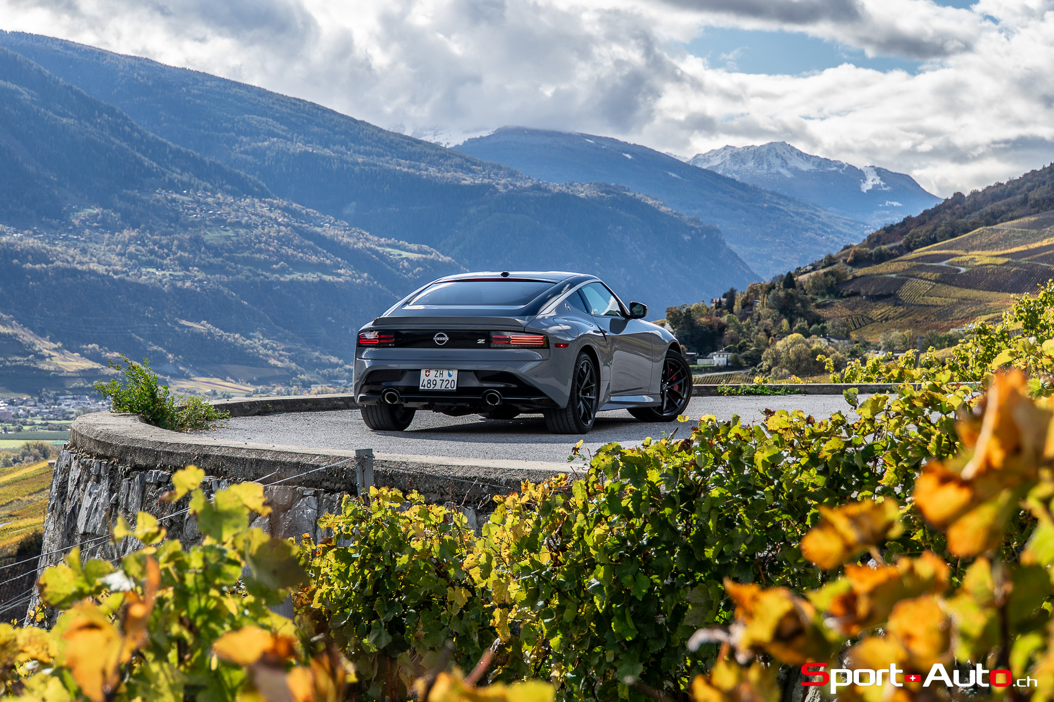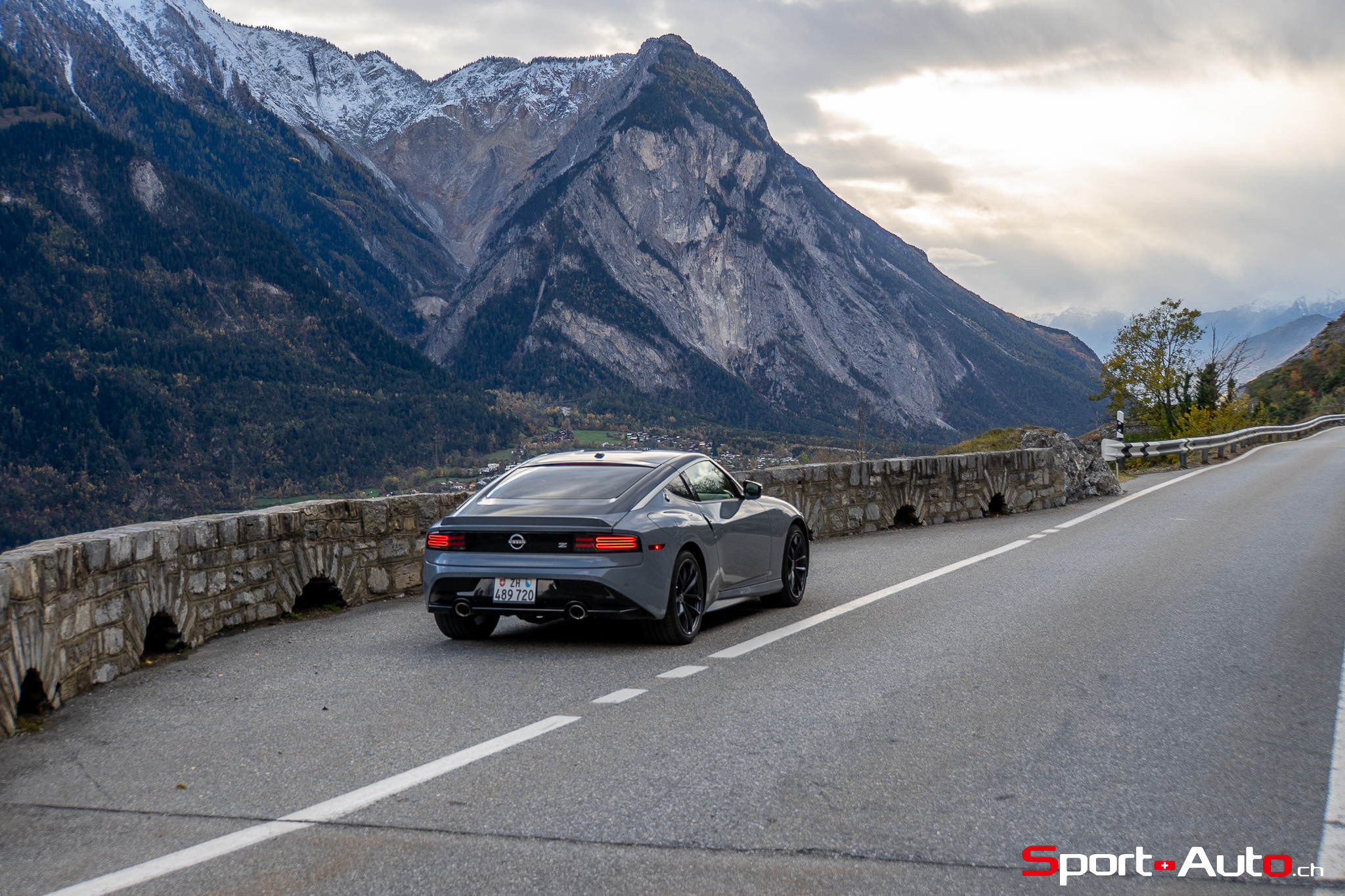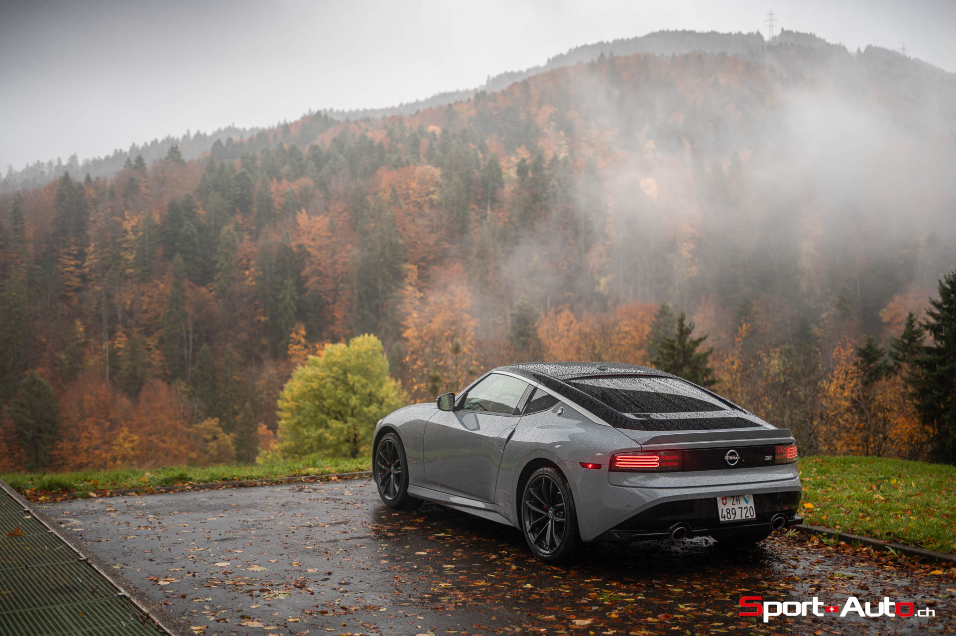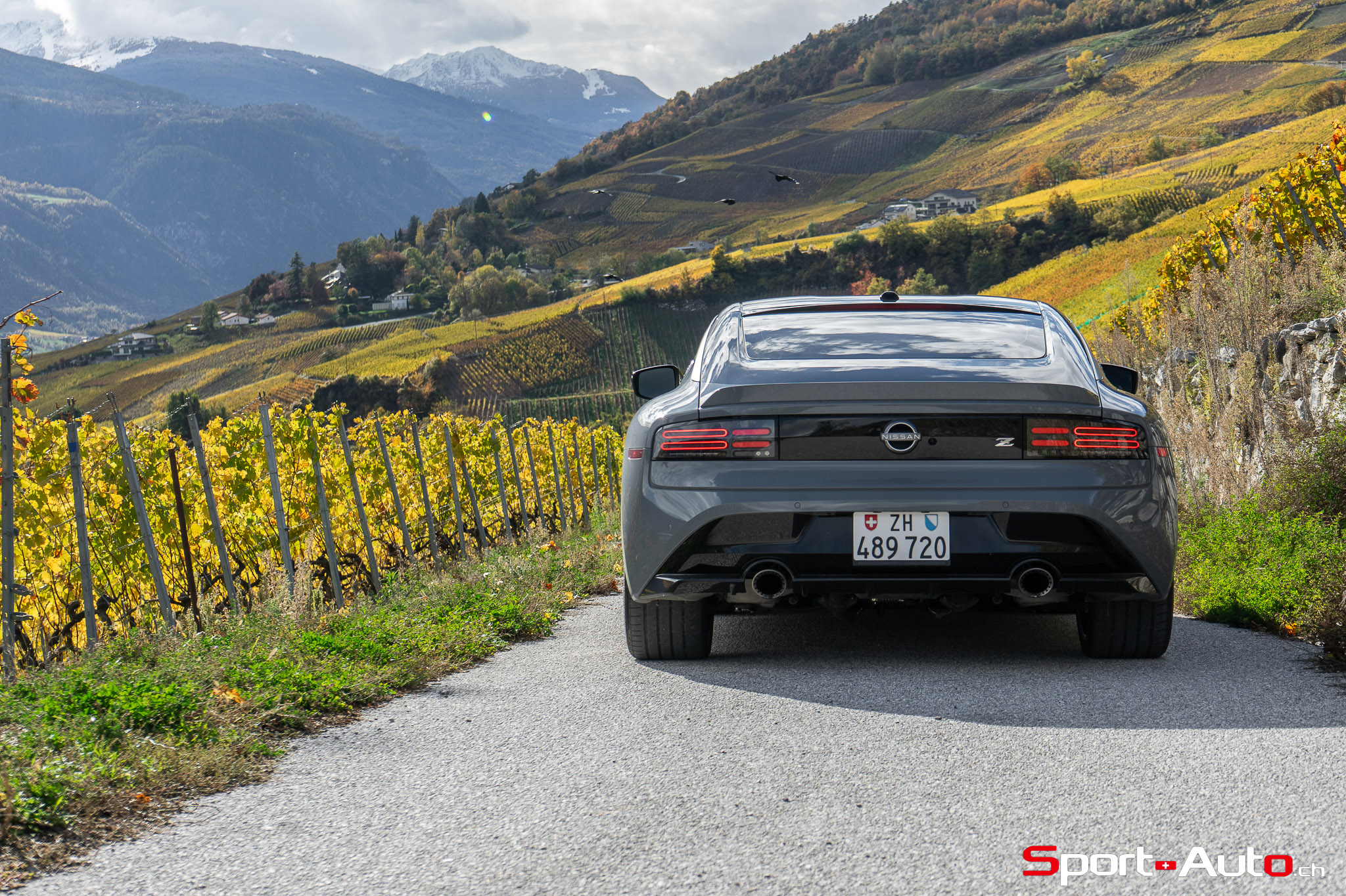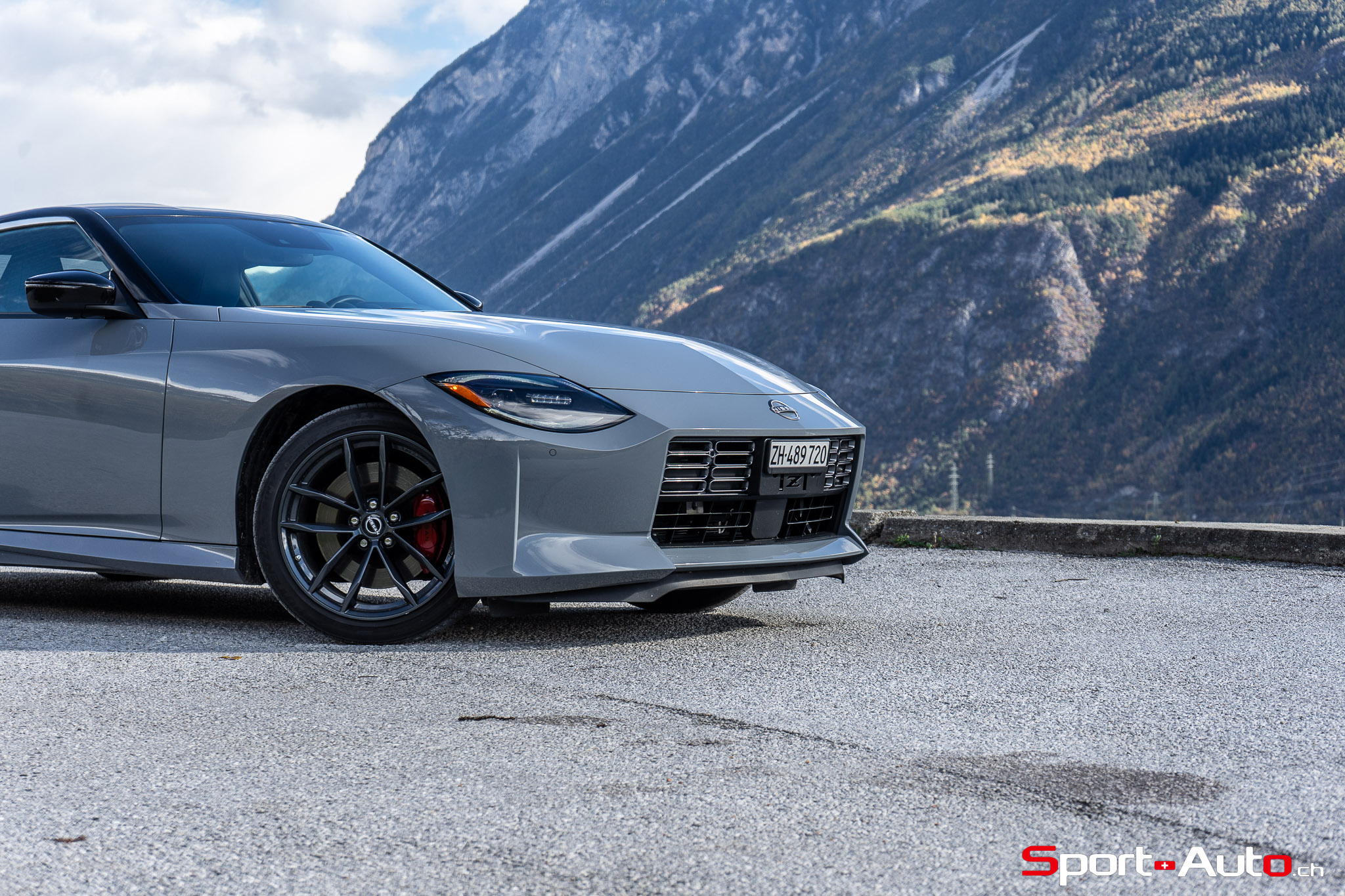 Même à basses vitesses, le ronron du V6 est très agréable à entendre. Son timbre rappelle celui de la Nissan GT-R. La boite à 6 vitesses dispose de série de la fonction “Rev-Matching”, et la voiture est équipée d’un arbre de transmission en carbone, comme sur une Alfa Romeo Giulia Quadrifoglio par exemple. Prenons à présent la direction des routes sinueuses fraîchement parcourues par le Rallye du Valais pour voir comment cette Nissan Z se dévoile en conduite sportive.
