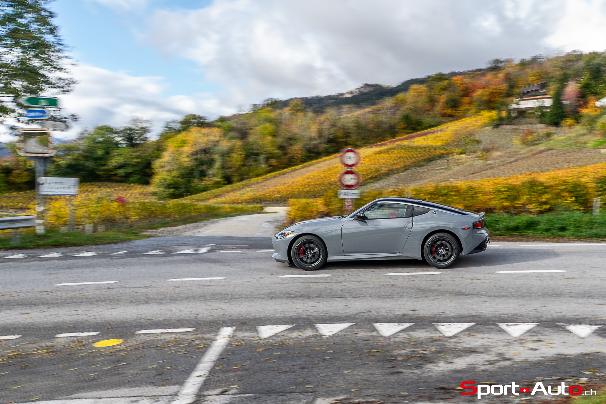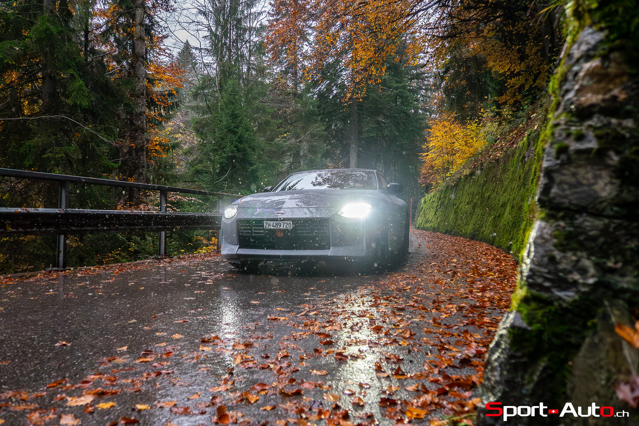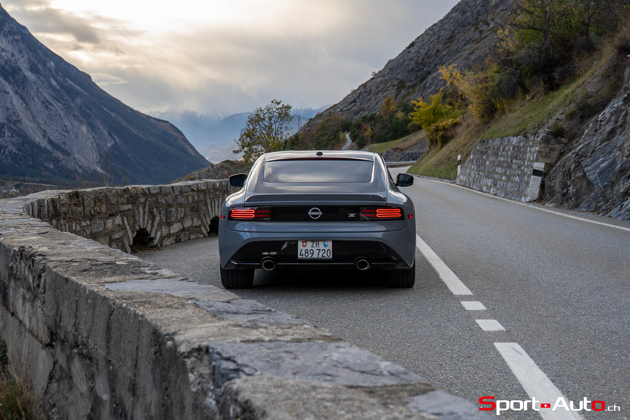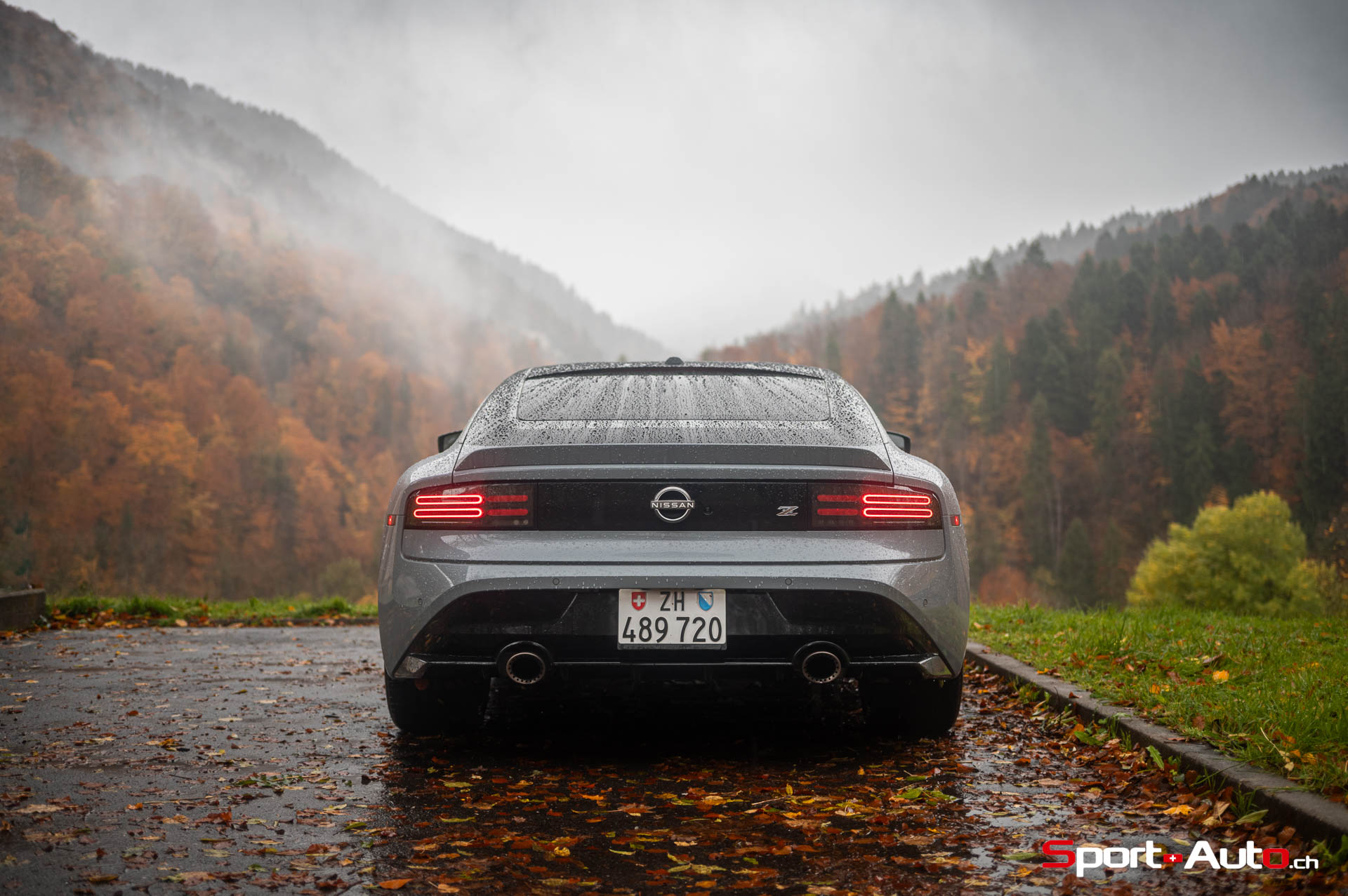 Même à basses vitesses, le ronron du V6 est très agréable à entendre. Son timbre rappelle celui de la Nissan GT-R. La boite à 6 vitesses dispose de série de la fonction “Rev-Matching”, et la voiture est équipée d’un arbre de transmission en carbone, comme sur une Alfa Romeo Giulia Quadrifoglio par exemple. Prenons à présent la direction des routes sinueuses fraîchement parcourues par le Rallye du Valais pour voir comment cette Nissan Z se dévoile en conduite sportive.