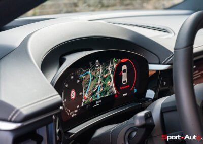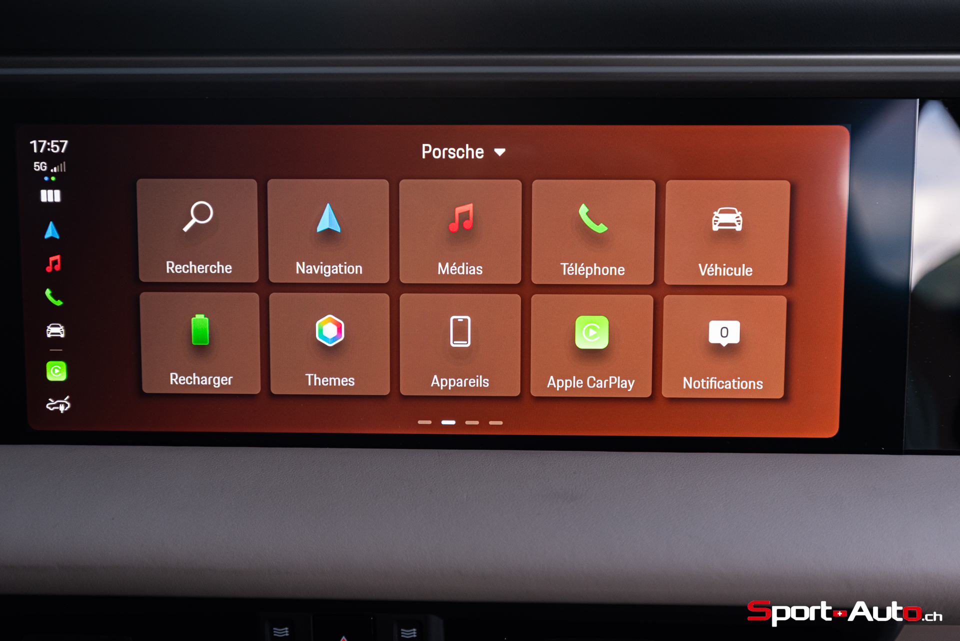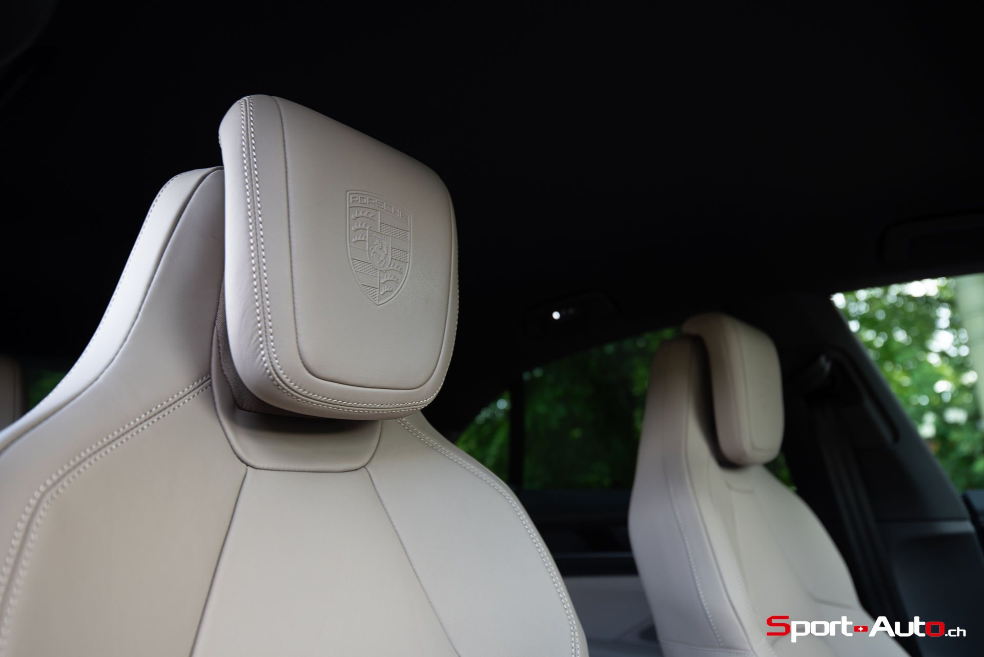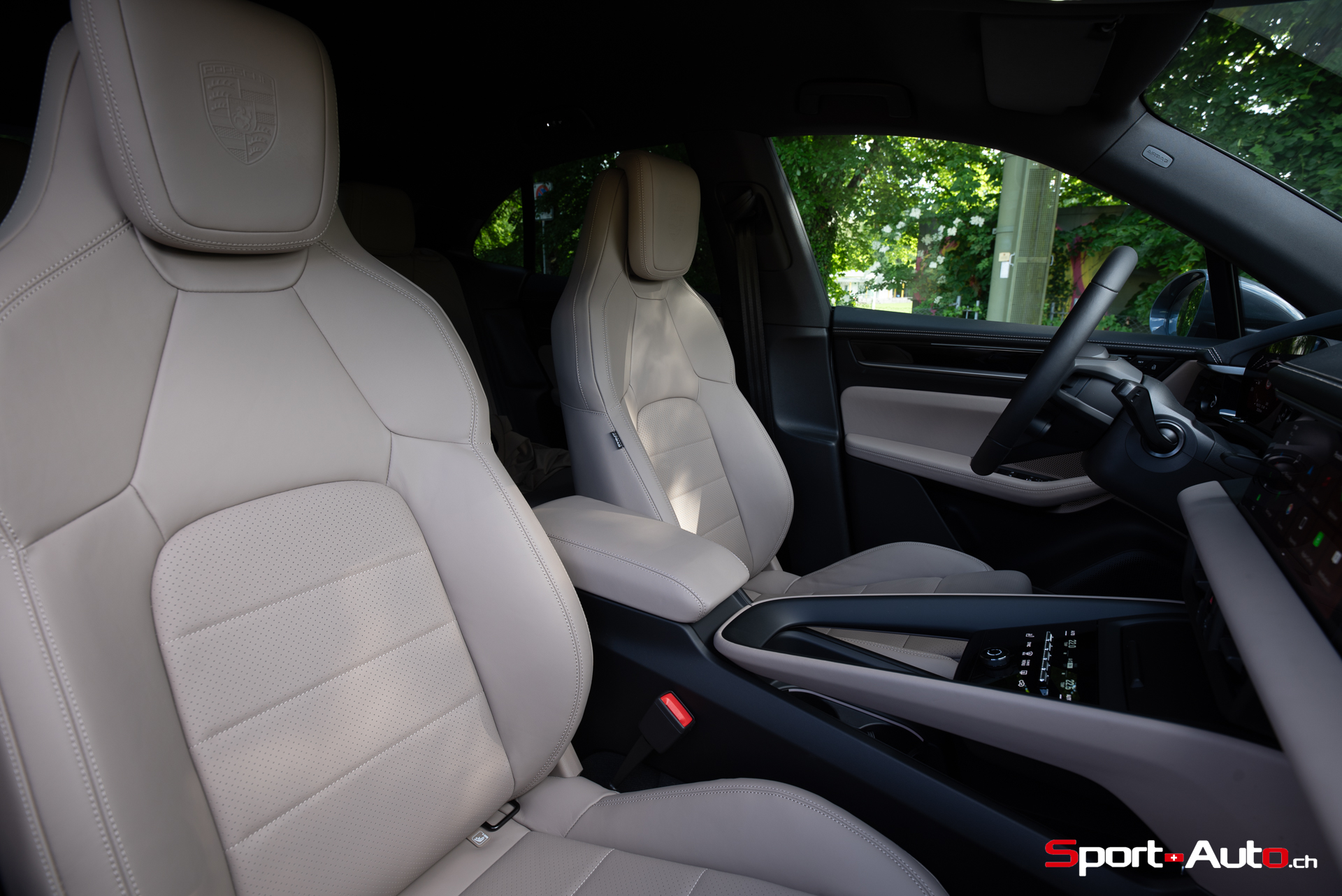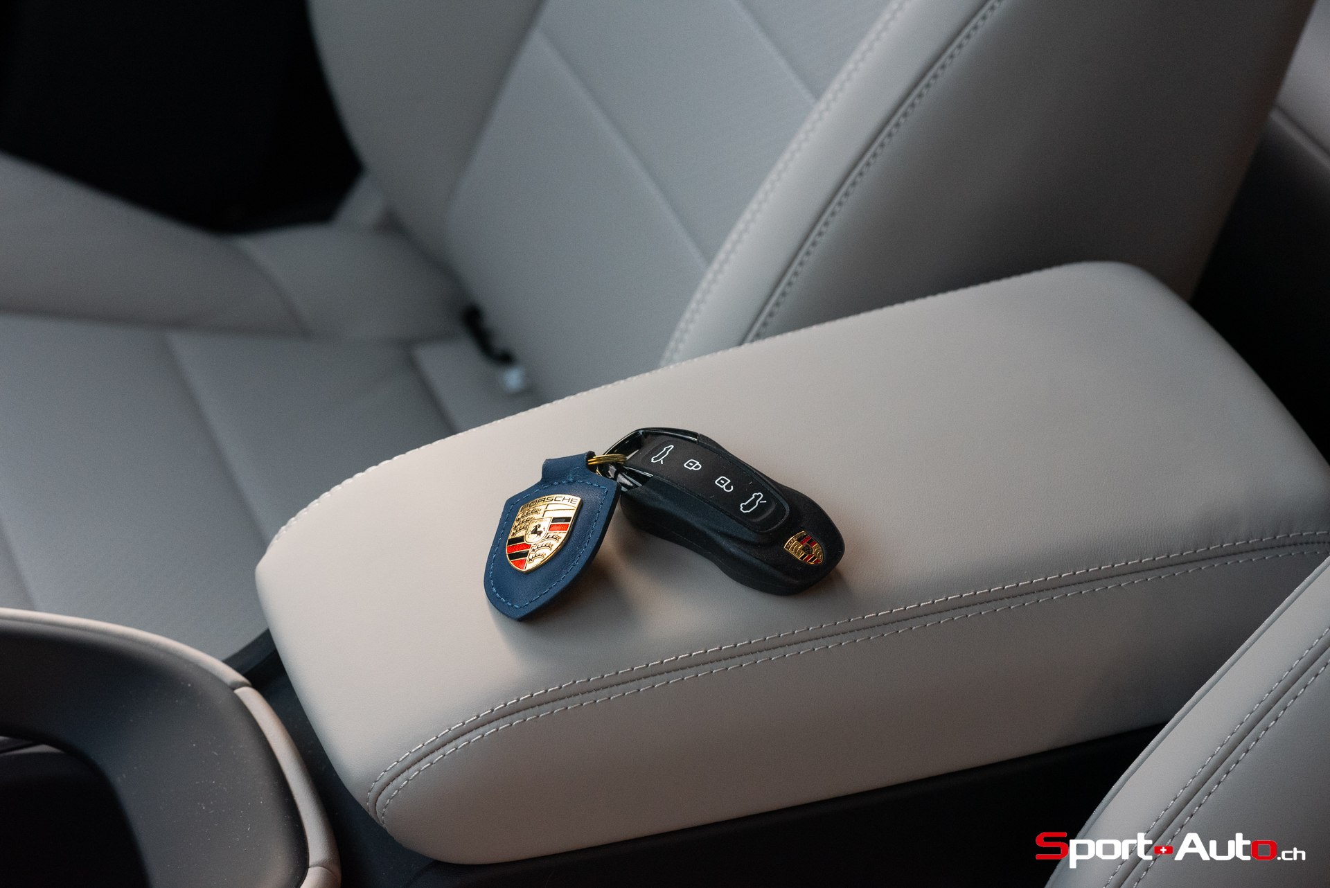 Dans notre configuration d’essai, la teinte exclusive Gris Ardoise Néo (CHF 3’530.-) souligne ses galbes musclés. Les jantes Offroad Design de 21 pouces peintes en gris Vésuve (CHF 3’290.-) apportent une touche de robustesse sans nuire à l’élégance générale. Les contours des vitres latérales en noir brillant (CHF 250.-), ainsi que le lettrage noir (CHF 300.-), ajoutent une signature discrètement sportive à l’ensemble. Un style à la fois familier et modernisé, fidèle à l’identité Porsche. Côté pratique, son coffre arrière de 540 litres (1’348 litres avec sièges arrière rabattus) offre un volume supérieur à la génération précédente. Il est complété par un coffre avant de 84 litres, idéal pour y loger les câbles de recharge.