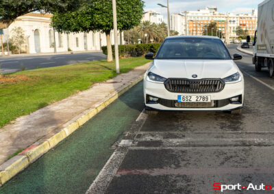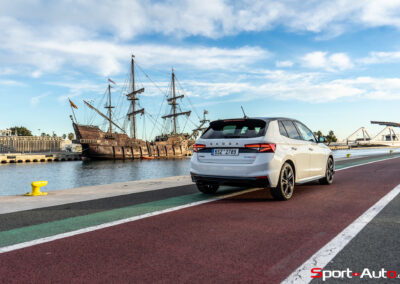 En roulage citadin, la Fabia 130 est agréable et son amortissement absorbe bien les irrégularités des routes de Valence. Je profite de circuler sur les rues de l’ancien circuit de Formule 1 désaffecté, utilisé entre 2008 et 2012. Les sons stridents des moteurs V8 atmosphériques ne résonnent plus contre les murs, mais l’endroit reste tout de même fascinant. Sur la longue ligne droite parallèle au port, la Skoda Fabia 130 aurait pu tenter d’atteindre ses 228 km/h de vitesse de pointe annoncés… mais nous sommes 13 ans trop tard !