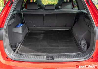 Le Skoda Kodiaq RS est disponible en version 7 places (+ CHF 960.-) mais, tout comme notre précédent essai de la Renault Espace à modularité intérieure similaire, nous disposons ici de la déclinaison à 5 places. Totalement avancée, la banquette arrière coulissante permet de libérer un volume de coffre de 910L.