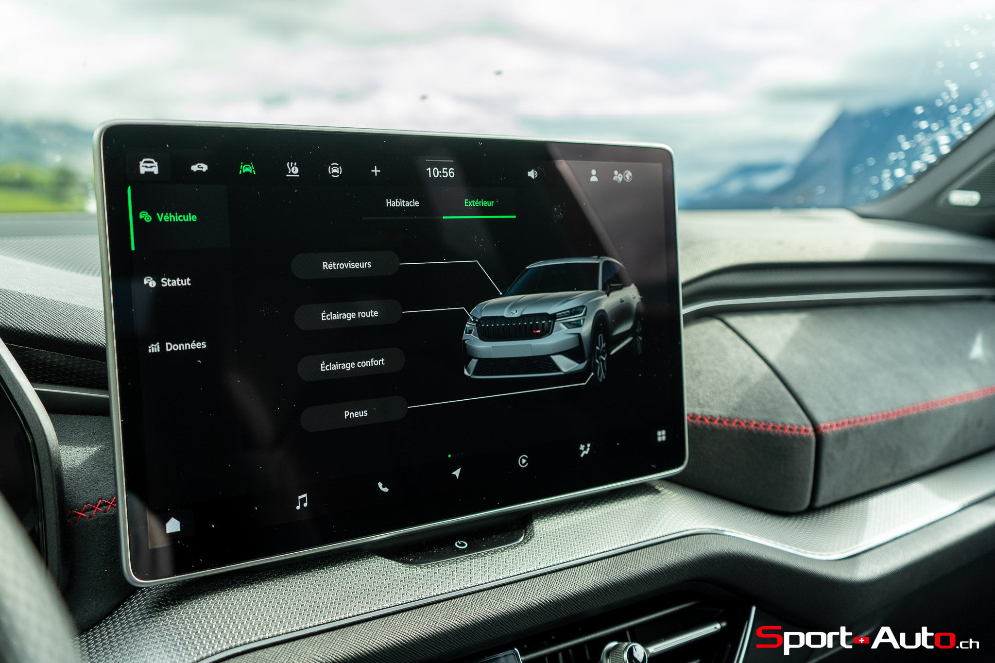 Disponible à partir de CHF 66’850.-, le Kodiaq RS est plutôt bien équipé : sièges avant électriques, phares Matrix Led, ou encore climatisation 3 zones sont de série. Notre exemplaire atteint un prix de CHF 72’370.-, mais inclut quelques options dispensables comme l’attelage de remorque (CHF 1060.-), les stores arrière en filets (CHF 160.-), ou encore le chauffage programmable à distance (CHF 1180.-).