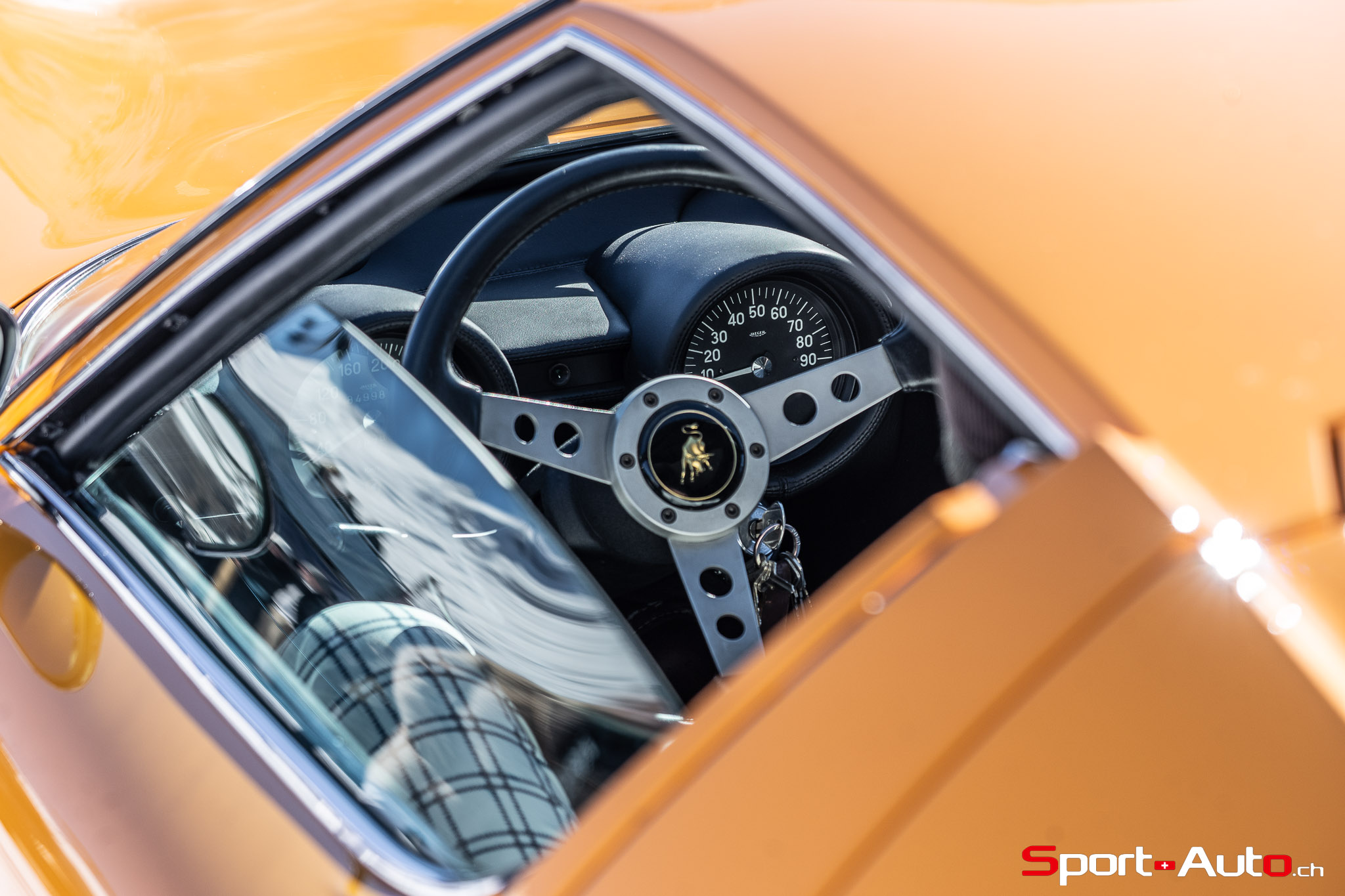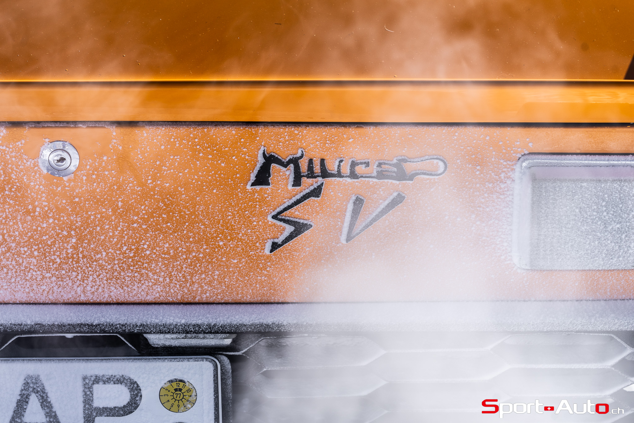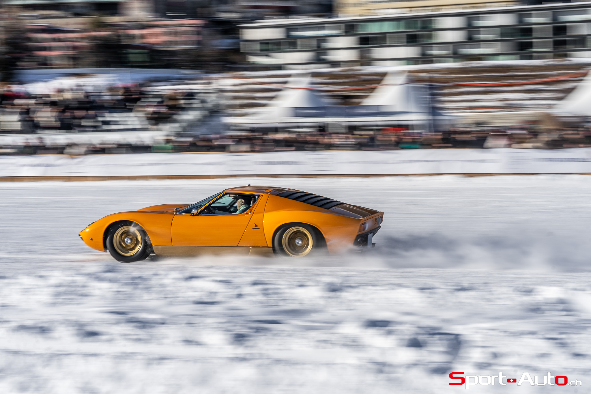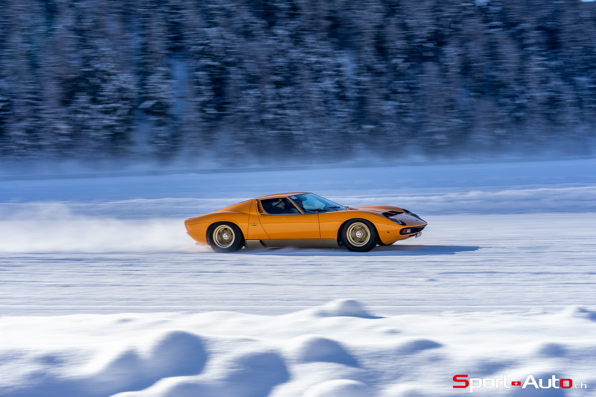 Enfin, une superbe Lamborghini Miura SV de 1972 orange a émerveillé beaucoup de visiteurs sur le lac gelé. Dotée de pneus cloutés, sa silhouette élégante, signée Bertone, était à l’aise sur la piste. Depuis 2022, il est possible de voir à chaque édition au moins un exemplaire de Lamborghini Miura présent au concours d’élégance… et ce n’est pas pour nous déplaire !
