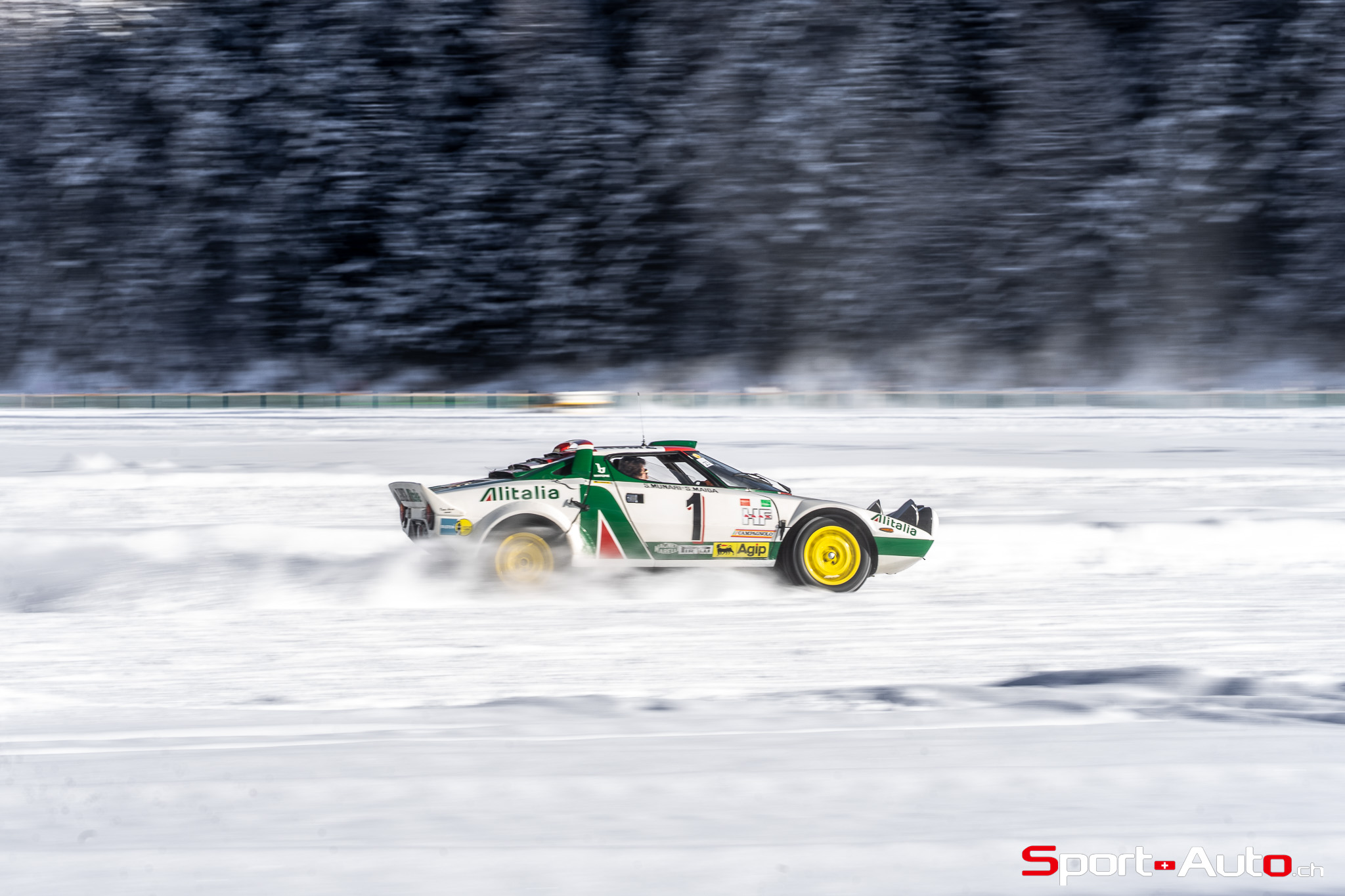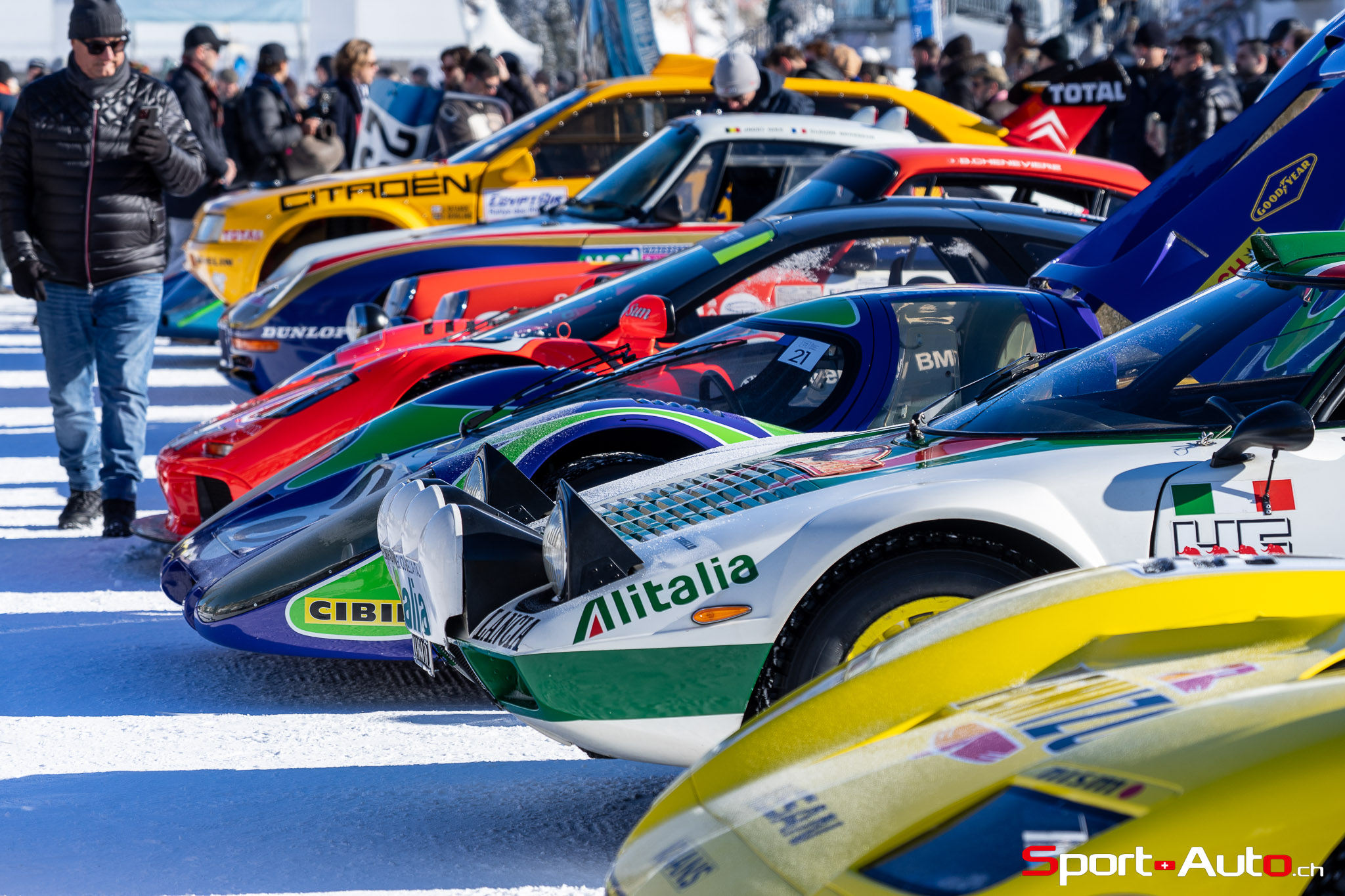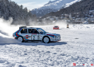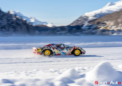 Avant de refermer ce chapitre consacré à la classe “Legendary Liveries”, il est difficile de ne pas mentionner la Lancia Delta S4 de 1986, aux couleurs Martini. Ce bolide de rallye, on le rappelle, était capable de développer plus de 500 ch grâce à son moteur 4 cylindres 1.8 l combinant turbo et compresseur volumétrique. L’exemplaire présent à St Moritz a été piloté par Markku Alen au Rallye Sanremo 1986 (vainqueur). Son propriétaire nous a offert de très belles dérives dans les virages enneigés du circuit.