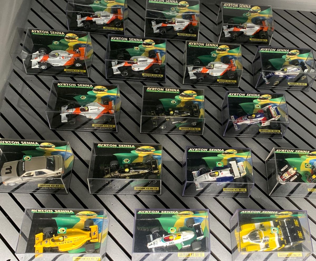 A cela s’ajoutent des vidéos, plusieurs lettres manuscrites du champion brésilien, ses gants, ses cagoules, ses modèles réduits, les bandes dessinées de son personnage Senninha et un total de 121 livres, tous consacrés au triple champion du monde trop tôt décédé.