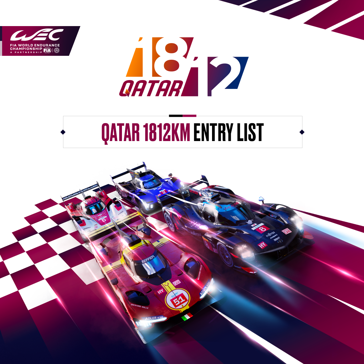 Alpine, Aston Martin, BMW, Cadillac, Corvette, Ferrari, Ford, Isotta Fraschini, Lamborghini, Lexus, McLaren, Peugeot, Porsche et Toyota se joindront tous au début des hostilités sur la piste du Circuit International de Lusail, soulignant le développement constant du Championnat du Monde d’Endurance.