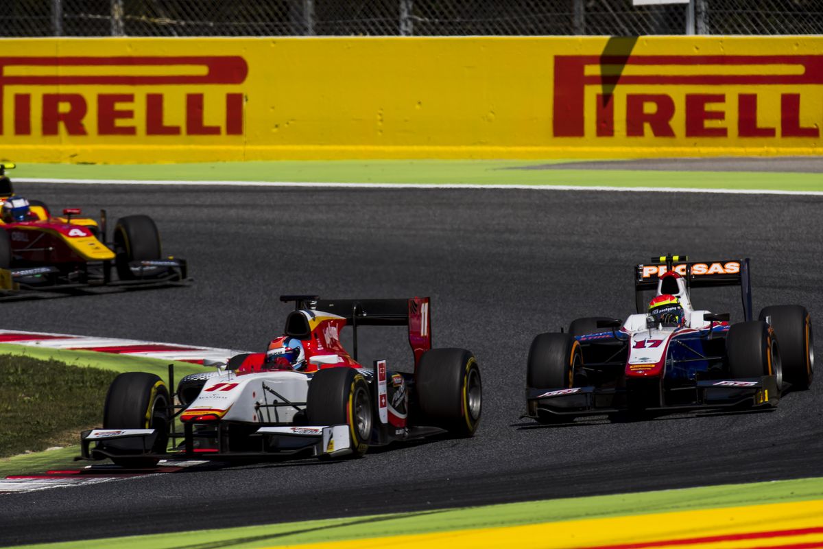 Nobuharu Matsushita put himself in the driver’s seat to collect victory in this morning’s Sprint Race at the Circuit de Catalunya-Barcelona with a solid, mature drive to P2 in the opening stages before a mistake by race leader Nicholas Latifi gave the McLaren development driver a clean run through for his first win since last year’s sprint race in Monaco, ahead of DAMS teammates Oliver Rowland and Latifi.The race opened under clear and warm conditions, and when the lights went out polesitter Artem Markelov bogged down, with P3 starter Latifi making an incredible start to easily lead front row starter Gustav Malja, Matsushita, Luca Ghiotto, Alexander Albon, Rowland, Jordan King and Charles Leclerc past the fuming Russian and into turn one. A few corners later Nyck De Vries and Antonio Fuoco came together and spun in unison, prompting the safety car to make an appearance.
