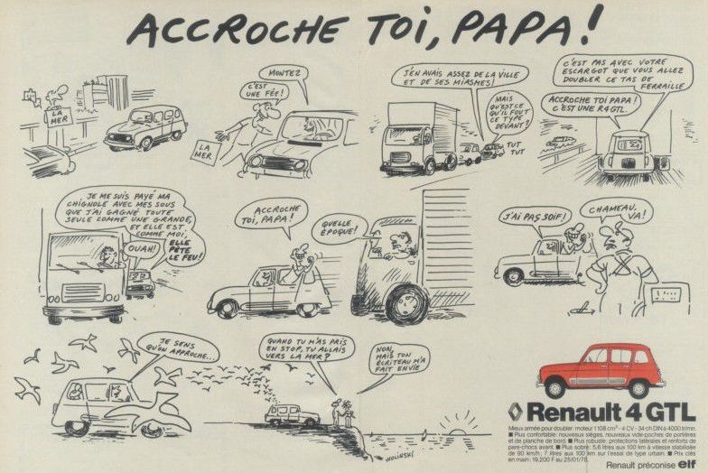 J’avais eu le privilège et le grand plaisir de rencontrer Georges Wolinski pour un article publié dans le magazine Sportwagen. La rencontre avait eu lieu dans le cadre des 24 Heures de Chamonix de 1999 où le dessinateur faisait partie du jury du Festival International de l’Automobile. Il m’avait notamment parlé de sa collaboration avec l’écurie de Guido Haberthur, de sa Jaguar – «achetée d’occasion», m’avait-il précisé – et des publicités qu’il avait réalisées pour Renault. «En 1978, la Régie m’avait demandé de rajeunir l’image de la Renault 4 et j’avais effectué toute une série de dessins humoristiques. Afin de souligner la frugalité de la voiture, j’avais dessiné un bonhomme dans une 4L qui faisait un bras d’honneur à un pompiste. L’un d’entre eux, après avoir vu ce dessin, avait voulu me casser la figure», nous avait-il raconté en terminant sa phrase dans un grand éclat de rire.