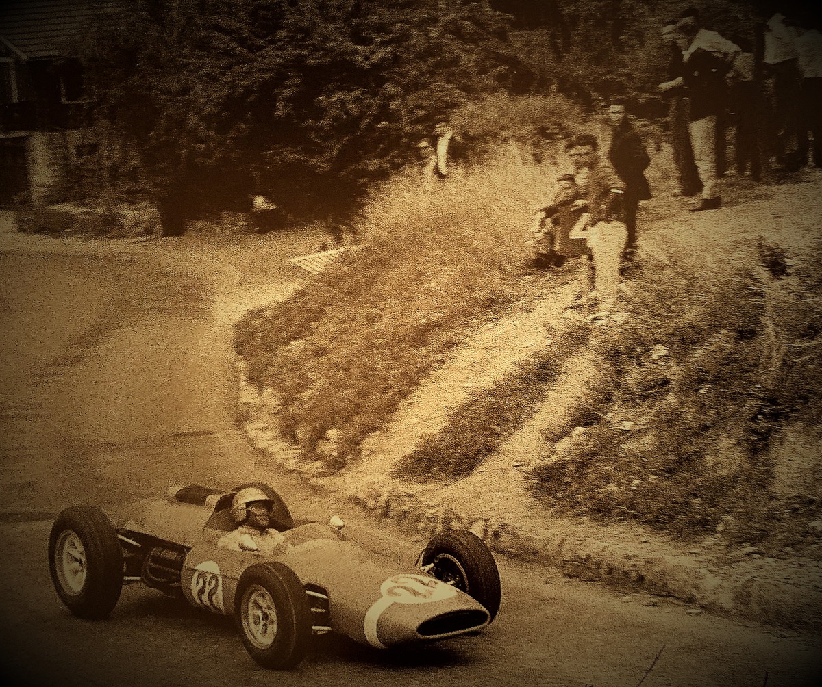 Jo Siffert et Jean-Claude Rudaz ont par exemple terminé respectivement 11e et 16e à Silverstone, le 2 mai 1964, lors de l’International Trophy, une course de F1 qui ne comptait pas pour le championnat du monde de la spécialité et qui avait vu les deux champions du monde Jack Brabham et Graham Hill terminer aux deux premières places. C’est ce même Jack Brabham que l’on retrouve le 30 août 1964 au départ de la course de côte de Sierre-Montana, épreuve du championnat d’Europe de la montagne.