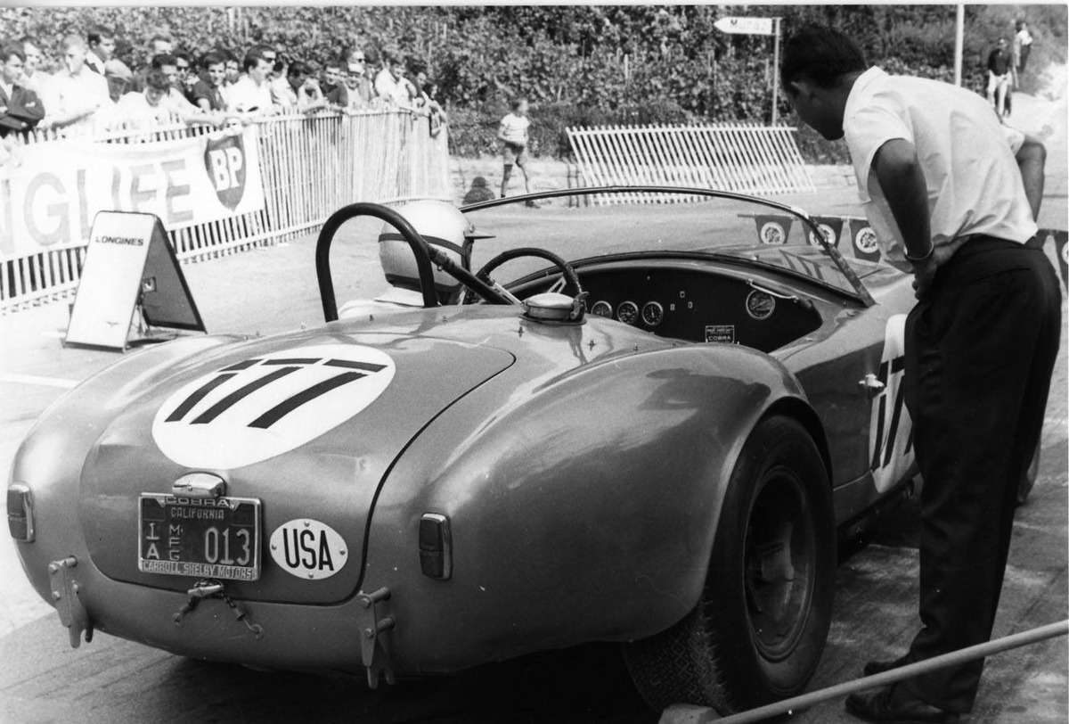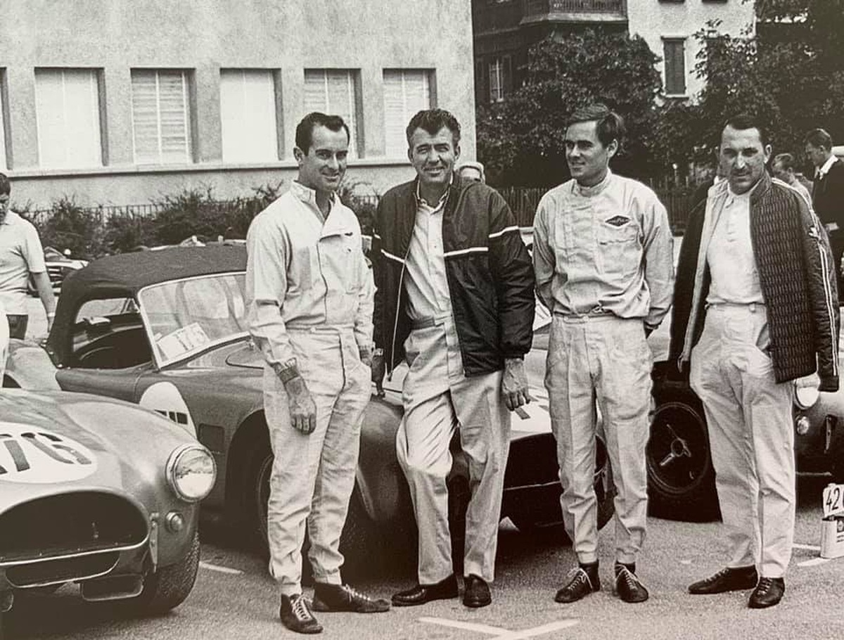 Leurs meilleures montées sont respectivement chronométrées en 6’40’’7 et 6’47’’6. Quant aux Cobra engagées par Carroll Shelby (2e depuis la gauche sur notre photo où il pose à Sierre avec Bob Bondurant, Jochen Neerpasch et Jo Schlesser), elles terminent respectivement 5e (Bob Bondurant, 6’55’’5), 8e (Jo Schlesser, 6’58’’10) et 11e (Jochen Neerpasch, 7’01’’7).