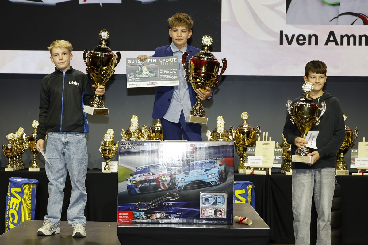 Chez les plus jeunes, en Super Mini, Aaron Buhofer (Spirit Racing) s’est adjugé la plus grande coupe. Le pilote de 13 ans, originaire de Birmensdorf, a dominé sa catégorie devant Nicolas Yerly (Swiss Hutless) et Romeo Epifanio (Innovate Competition). En OK Junior, Iven Ammann, représentant l’équipe Innovate Competition, a décroché son premier titre national. Malgré une grande malchance lors de la dernière course, le jeune Thurgovien de 14 ans a su résister à la pression exercée par le champion Super Mini 2024, Nicola Mateo Frigg (UBIQ Racing). Le pilote privé Marc Müller complète le podium junior.