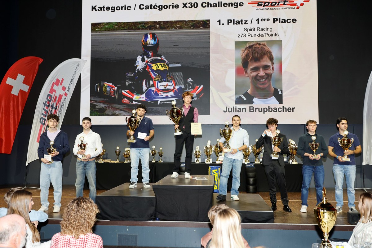 Julian Brupbacher (Spirit Racing) s’est lui aussi illustré en remportant brillamment le titre. Le Payernois, de bientôt 17 ans, n’a laissé aucune chance à Samuel Ifrid (UBIQ) — deuxième pour la troisième année consécutive — ni à Dylan Turri (Blackhawk Racing), dans la catégorie la plus relevée du X30 Challenge Switzerland. Il a ainsi brandi le trophée suprême à Baden.