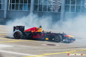 Un bruit strident, des accélérations phénoménales et des glissades savamment maîtrisées. Tel pourrait être succinctement résumé le moment historique qu’ont vécu un demi-millier de spectateurs massés autour d’un circuit aménagé à La Chaux-de-Fonds, derrière le siège de TAG Heuer, partenaire depuis le mois de décembre 2015 de l’écurie Red Bull de F1.
