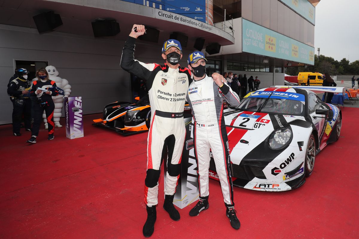 La Ferrari n°8 de Rino Mastronardi (Iron Lynx) s’élance depuis la pole position, tandis que la Porsche n°2 de Nicolas Leutwiler (Pzoberer Zürichsee by TFT) est deuxième. Les deux voitures sont roues dans roues pendant les deux premiers tours, puis Leutwiler plonge à l’intérieur du virage 10 pour prendre le commandement de la catégorie.