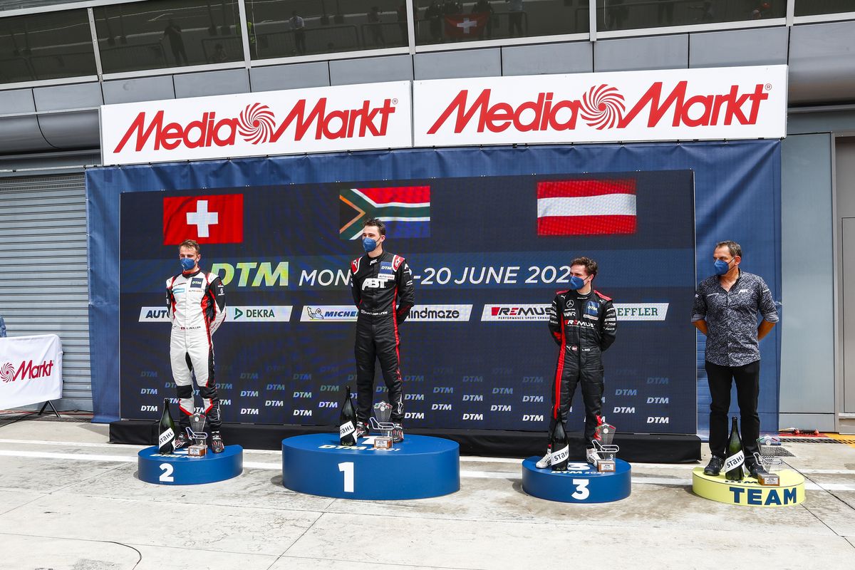 Après quelques difficultés pour la marque aux anneaux le samedi sur le temple de la vitesse, la course dominicale allait voir un règne des Audi R8 LMS. Ainsi, le jour de son anniversaire, Kelvin Van der Linde s’offrait la pôle position devant Nico Müller. Mais, si le poleman prenait le meilleur envol et allait s’offrir sa première victoire en DTM s’offrant ainsi un anniversaire parfait, la course allait être autrement plus difficile pour Nico Müller. Ainsi, le pilote suisse allait être, constamment en lutte pour le podium. Mais, le pilote bernois faisait parler son expérience et une belle stratégie pour le changement de pneus lui permettait ainsi de s’offrir la deuxième place lors de cette seconde course de la saison, Lucas Auer complétant le podium.